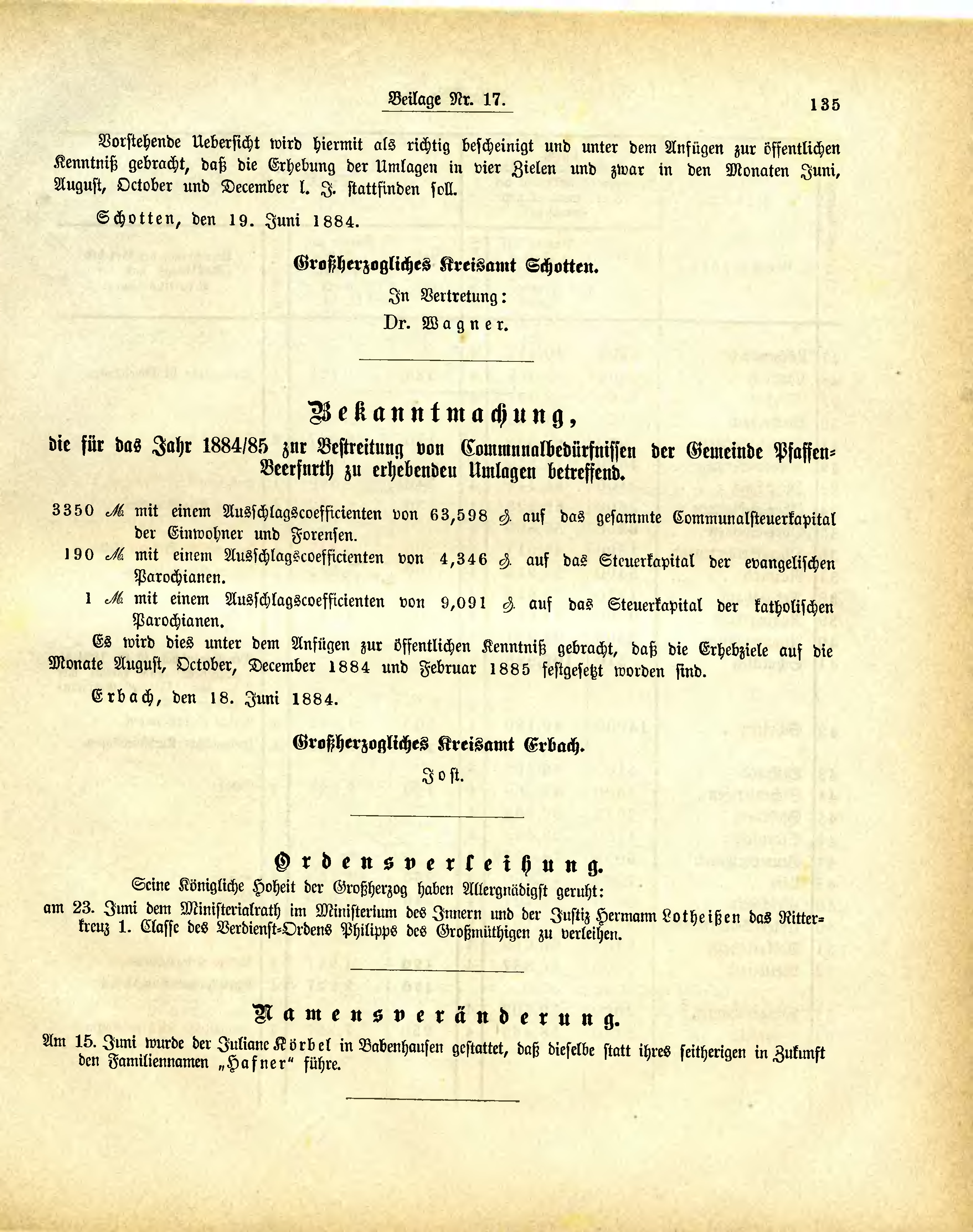 Erbach, den 18. Juni 1884.