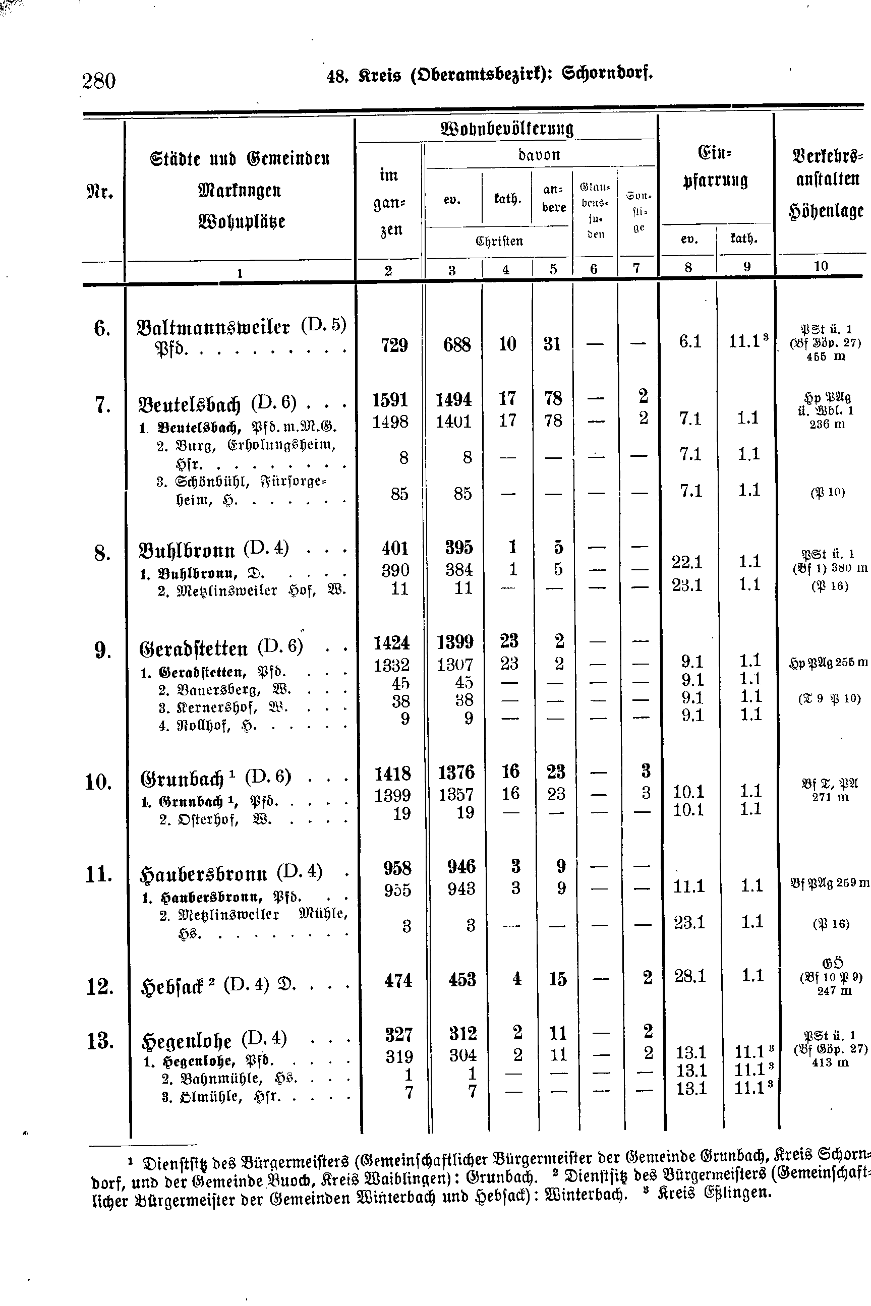 Wohnbevölkerung | Einpfarrung | Verkehrs-anstalten Höhenlage | ||||||