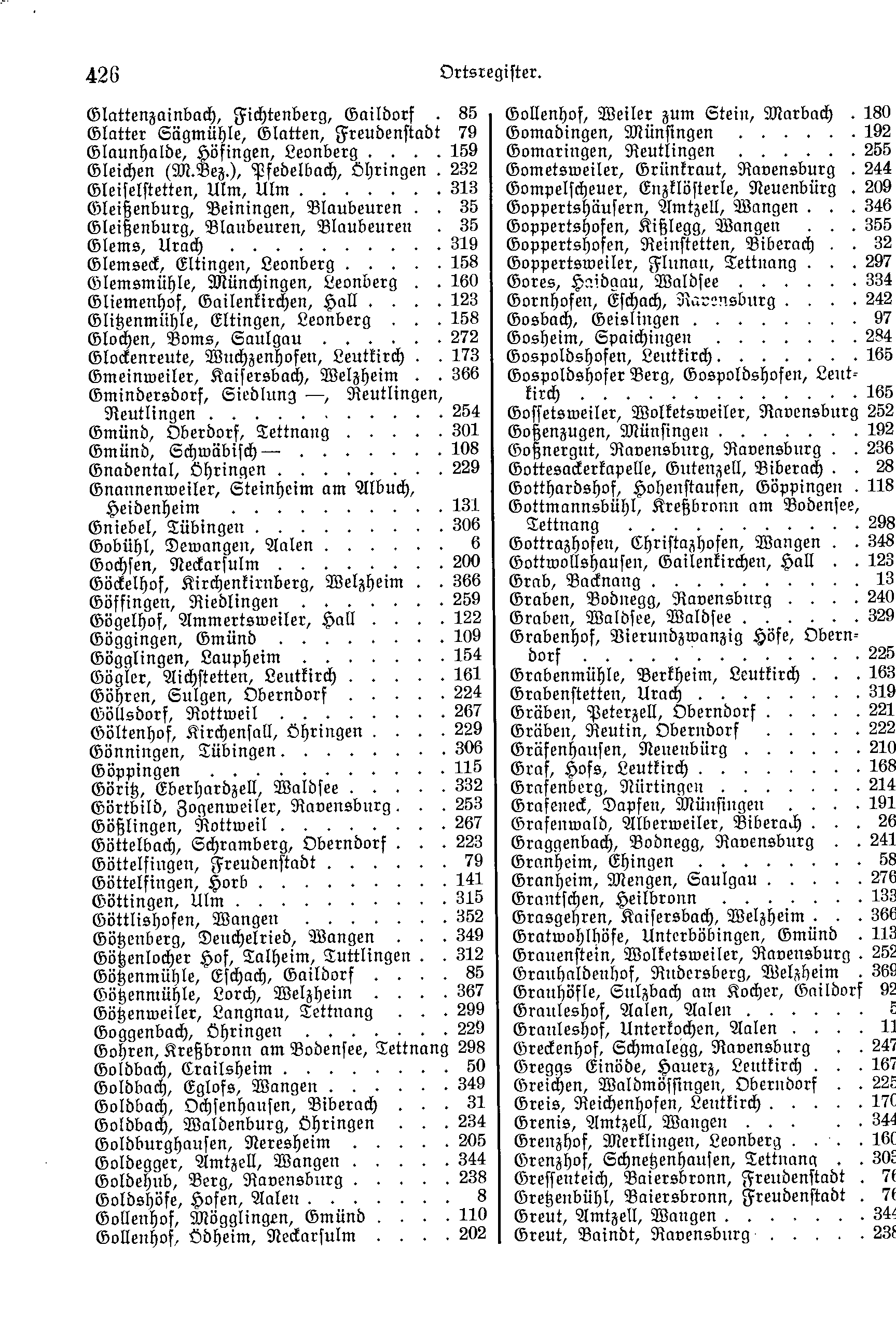 | Gliemenhof, Gailenkirchen, Hall | 1239 | Gornhofen, Eschach, Ravensburg | 242 |