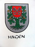 Das Wappen erinnert an das Siegel des ehmaligen Amtes Hagen. Die Eiche weist auf das alte Wahrzeichen Hagen, die "Staleke" auf dem Gerichtsplatz hin, und der Schild mit den Schlüsseln auf das Wappen der Erzbishöfe von Bremen.