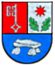 In silber eine bewurzelte grüne Eiche, bei der zwischen Ästen ein roter Schild mit zwei gekreutzten silbernen Schlüsseln angebracht ist.