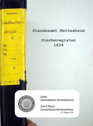 Auszug aus dem Nettesheimer Sterberegister von 1834