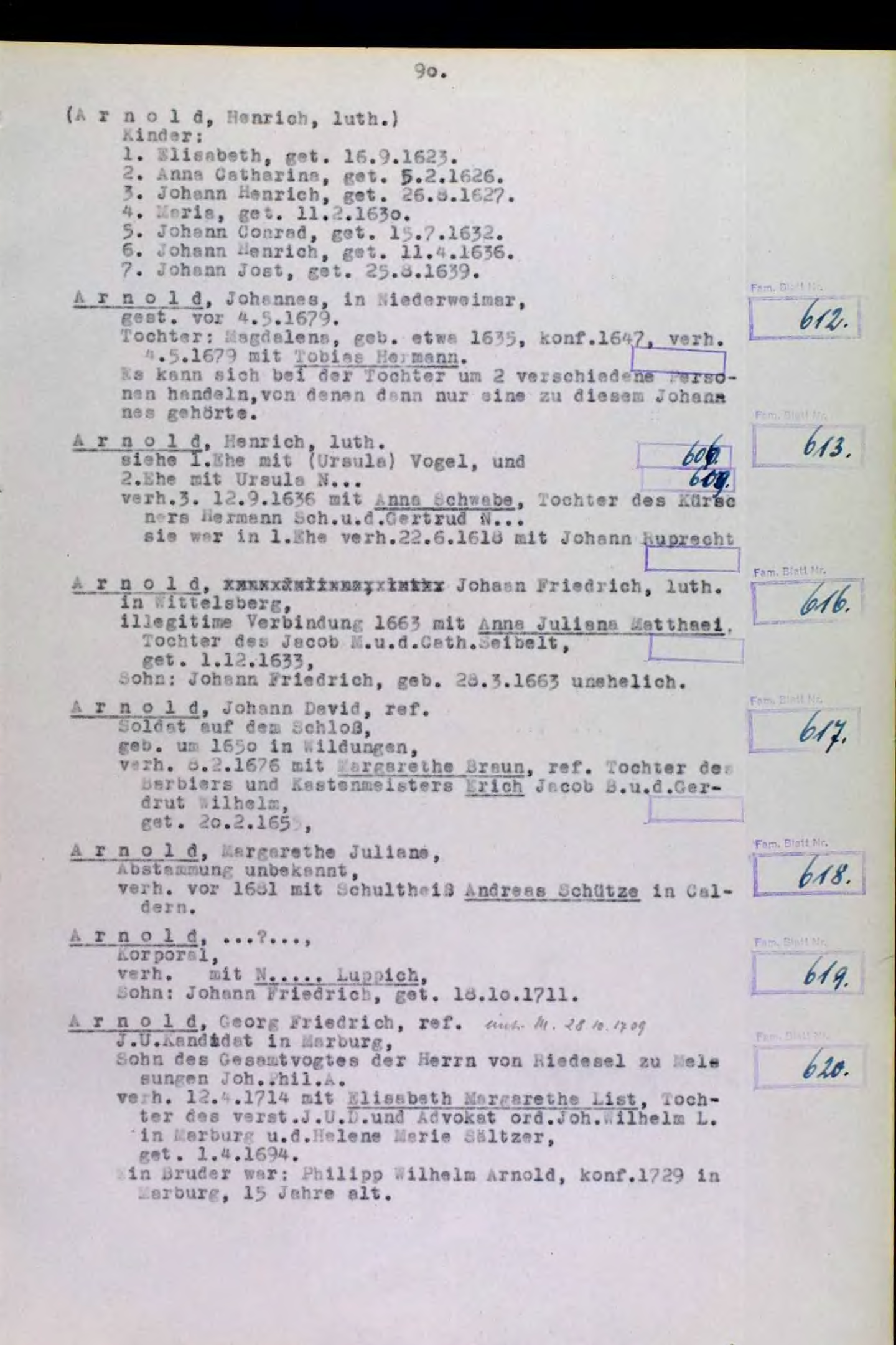 | Seit Fertigstellung des Marburger Sippenbuches 1950-1966 sind zahlreiche Ergänzungen und auch notwendige Korrekturen bekannt geworden. Zur aktuellen Seite existiert noch keine Ergänzunges- und Korrekturseite. Wenn Sie selbst Ergänzungen vornehmen möchten, wenden Sie sich bitte an Benutzer:Ernestus. |