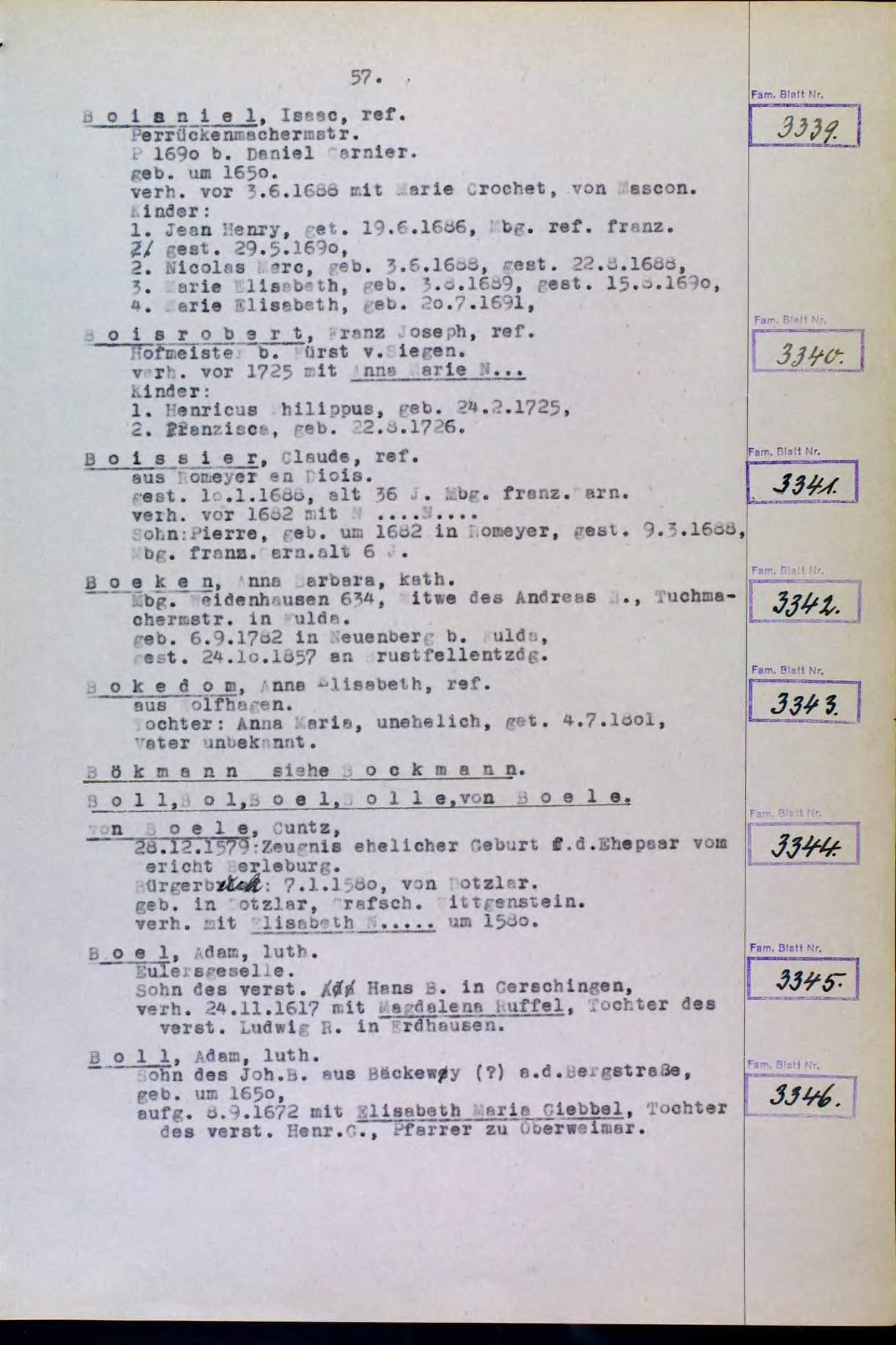 | Seit Fertigstellung des Marburger Sippenbuches 1950-1966 sind zahlreiche Ergänzungen und auch notwendige Korrekturen bekannt geworden. Bitte beachten Sie daher unbedingt die Ergänzungen und Korrekturen zu dieser Seite. Wenn Sie selbst Ergänzungen vornehmen möchten, wenden Sie sich bitte an Benutzer:Ernestus. |