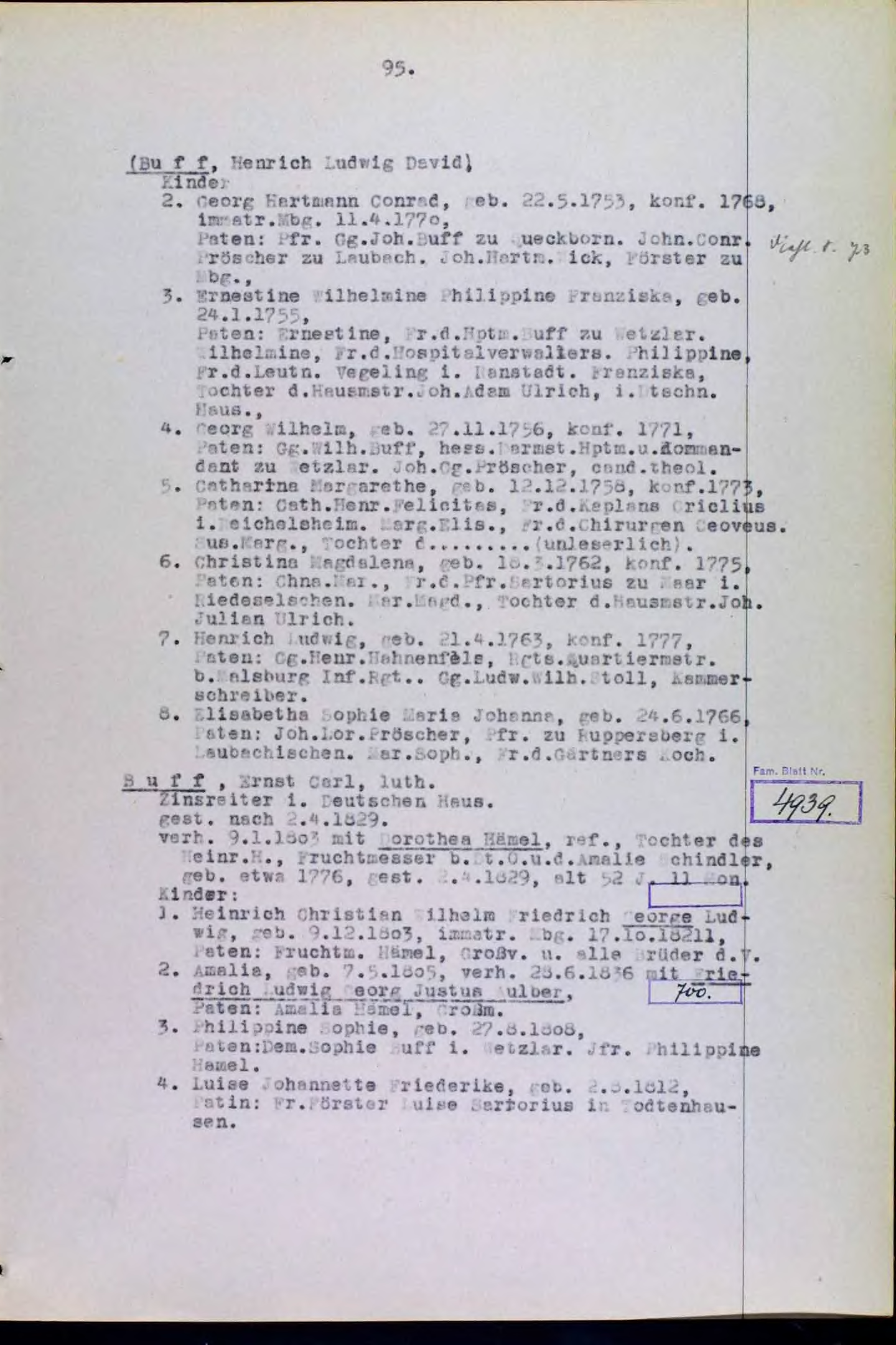 | Seit Fertigstellung des Marburger Sippenbuches 1950-1966 sind zahlreiche Ergänzungen und auch notwendige Korrekturen bekannt geworden. Zur aktuellen Seite existiert noch keine Ergänzunges- und Korrekturseite. Wenn Sie selbst Ergänzungen vornehmen möchten, wenden Sie sich bitte an Benutzer:Ernestus. |