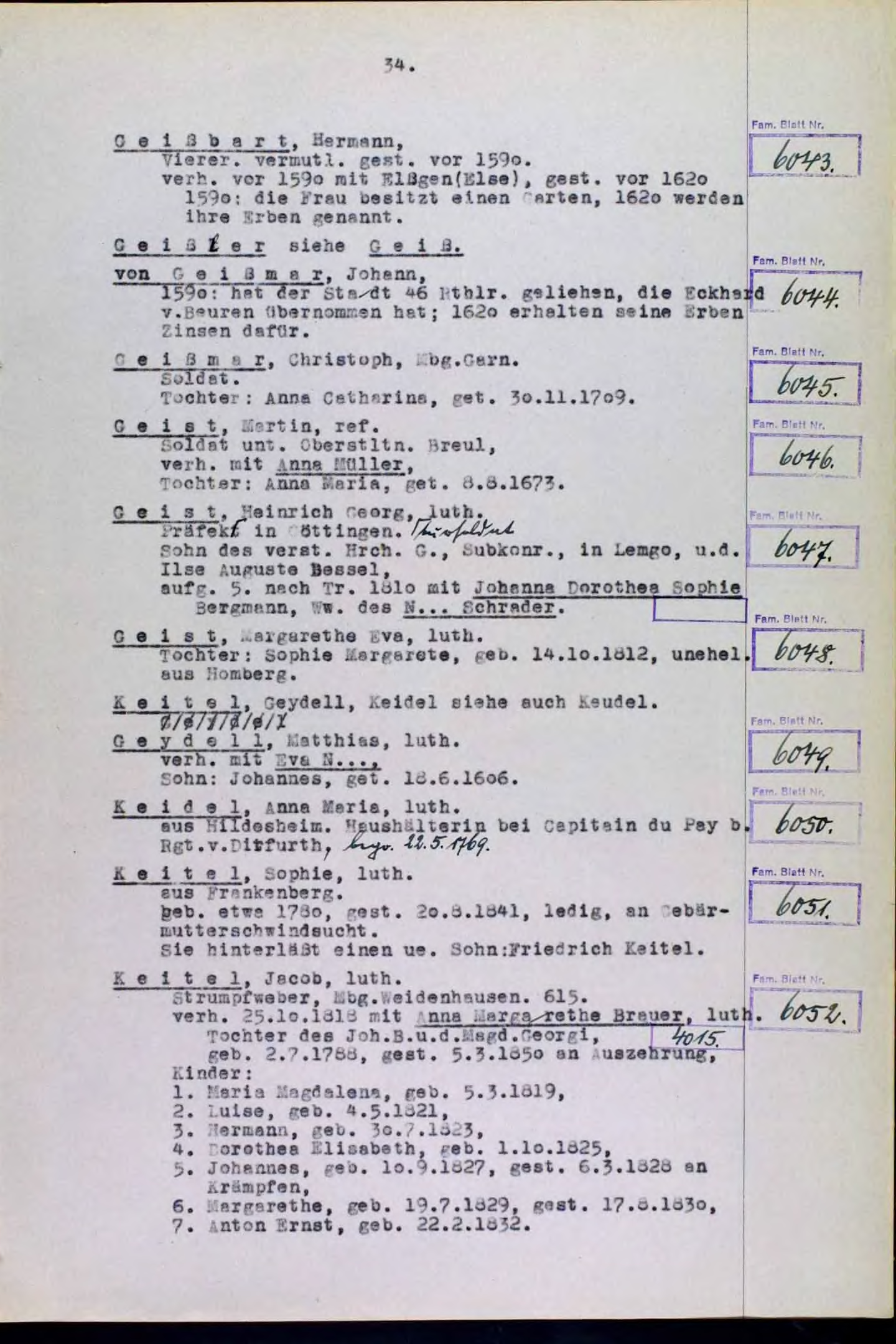 Info non-talk.svg Seit Fertigstellung des Marburger Sippenbuches 1950-1966 sind zahlreiche Ergänzungen und auch notwendige Korrekturen bekannt geworden. Zur aktuellen Seite existiert noch keine Ergänzunges- und Korrekturseite. Wenn Sie selbst Ergänzungen vornehmen möchten, wenden Sie sich bitte an Benutzer:Ernestus.