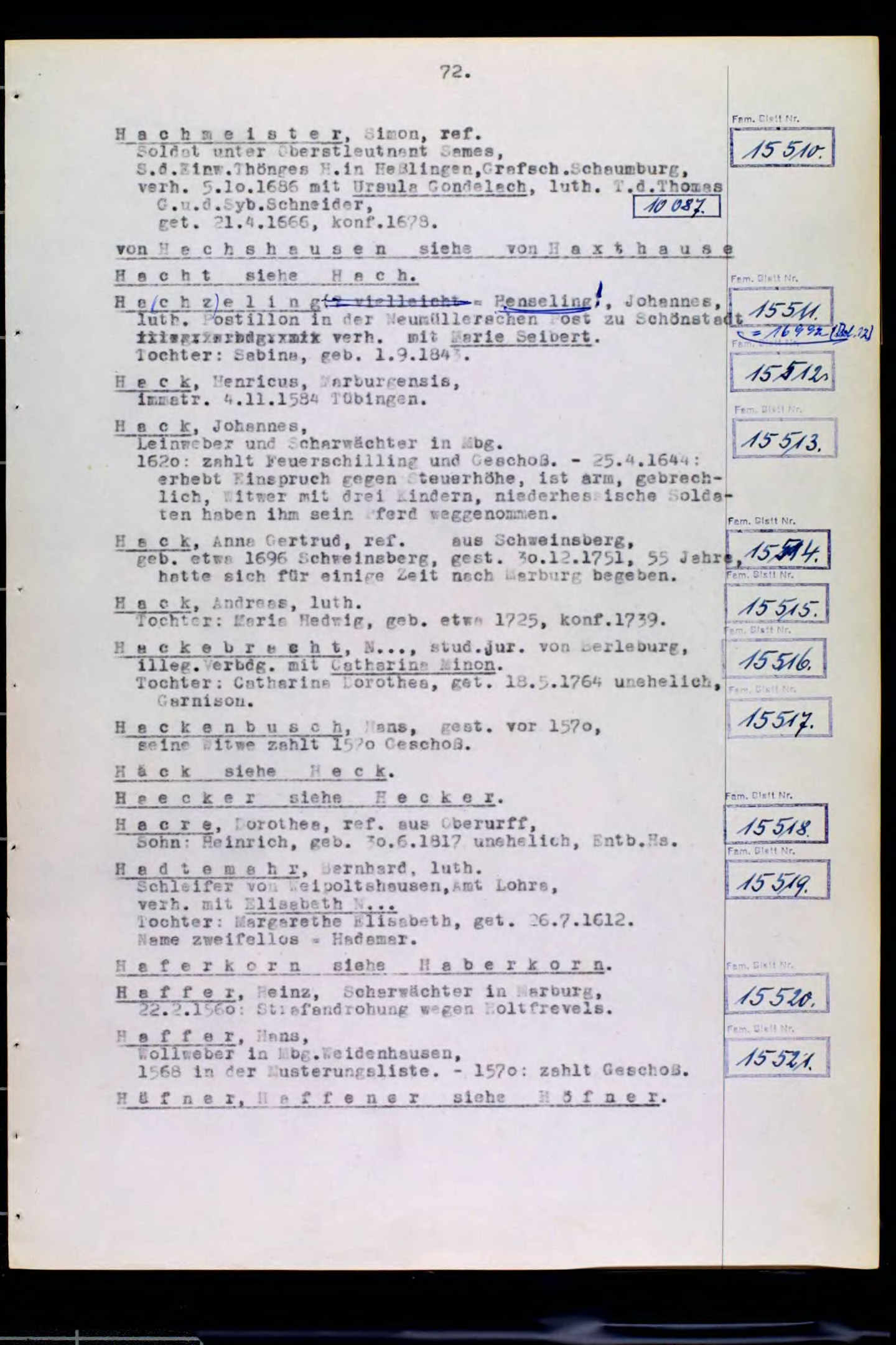 | Wenn Sie mit dem Marburger Sippenbuch noch nicht vertraut sind, sollten Sie die Benutzungshinweise beachten. |