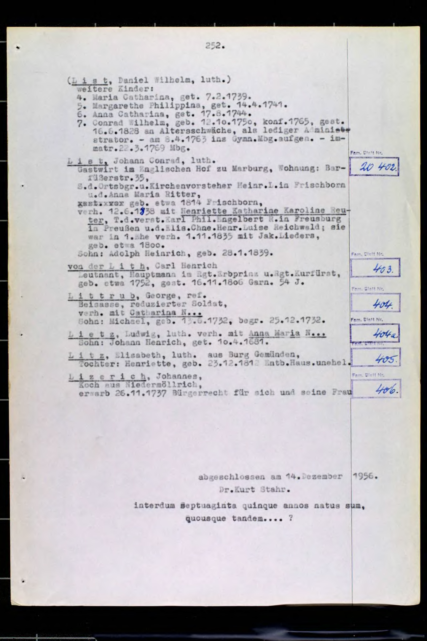 | Seit Fertigstellung des Marburger Sippenbuches 1950-1966 sind zahlreiche Ergänzungen und auch notwendige Korrekturen bekannt geworden. Zur aktuellen Seite existiert noch keine Ergänzunges- und Korrekturseite. Wenn Sie selbst Ergänzungen vornehmen möchten, wenden Sie sich bitte an Benutzer:Ernestus. |