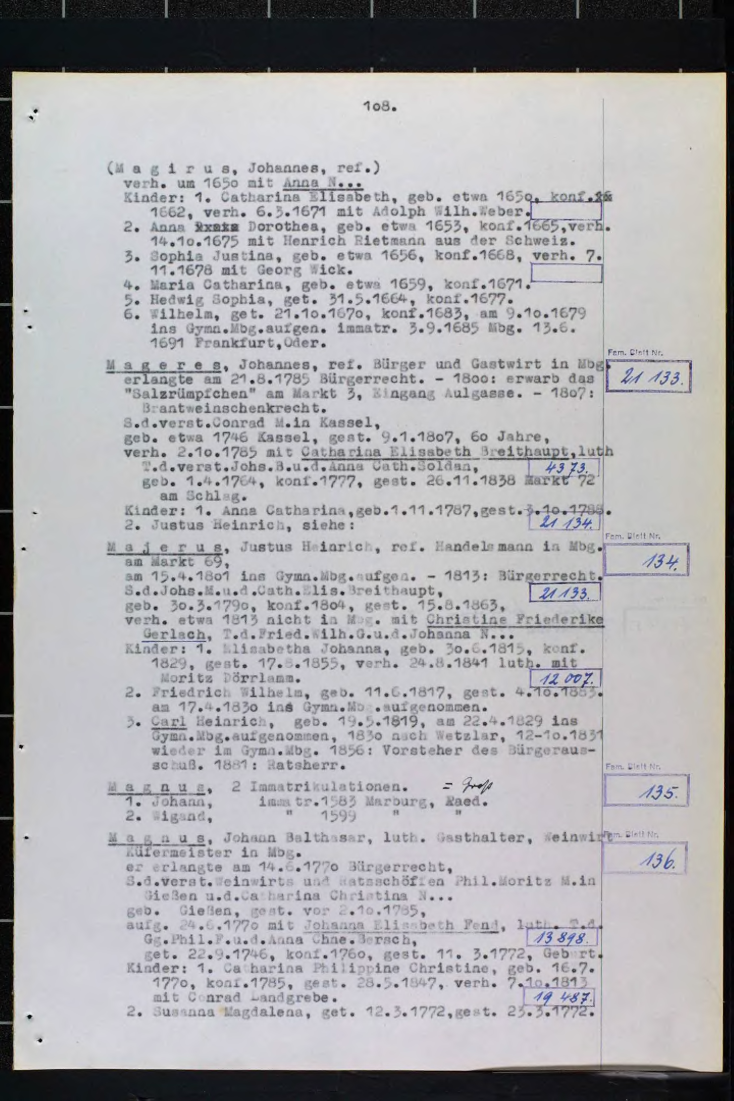 | Wenn Sie mit dem Marburger Sippenbuch noch nicht vertraut sind, sollten Sie die Benutzungshinweise beachten. |