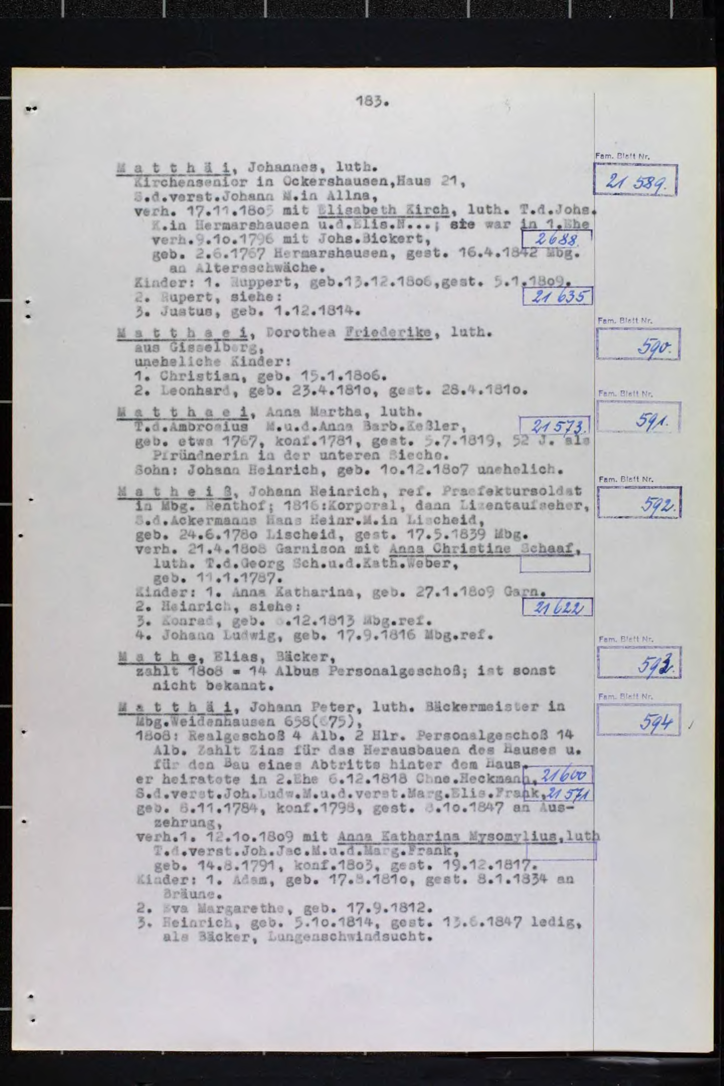 | Seit Fertigstellung des Marburger Sippenbuches 1950-1966 sind zahlreiche Ergänzungen und auch notwendige Korrekturen bekannt geworden. Zur aktuellen Seite existiert noch keine Ergänzunges- und Korrekturseite. Wenn Sie selbst Ergänzungen vornehmen möchten, wenden Sie sich bitte an Benutzer:Ernestus. |