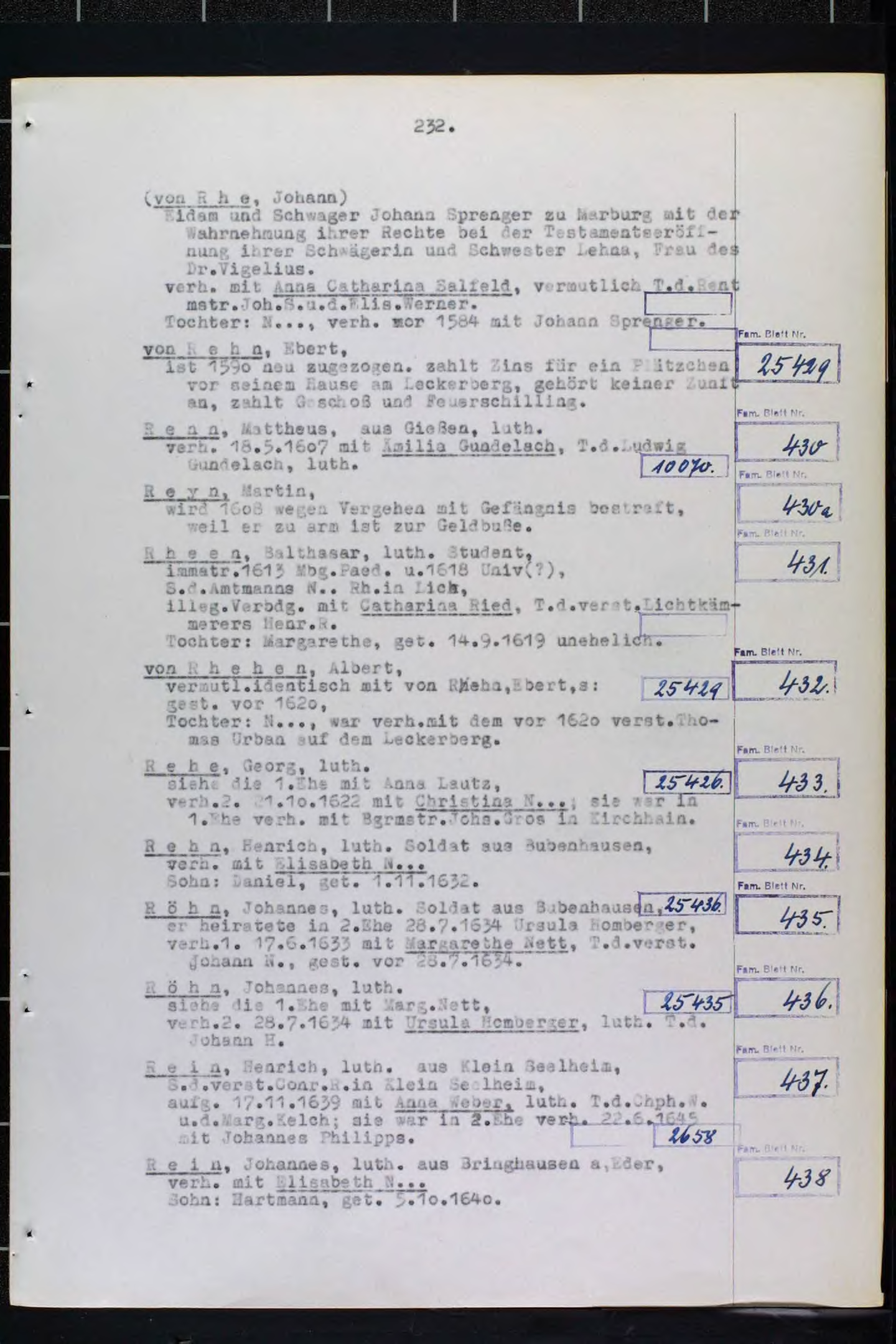 | Seit Fertigstellung des Marburger Sippenbuches 1950-1966 sind zahlreiche Ergänzungen und auch notwendige Korrekturen bekannt geworden. Zur aktuellen Seite existiert noch keine Ergänzunges- und Korrekturseite. Wenn Sie selbst Ergänzungen vornehmen möchten, wenden Sie sich bitte an Benutzer:Ernestus. |