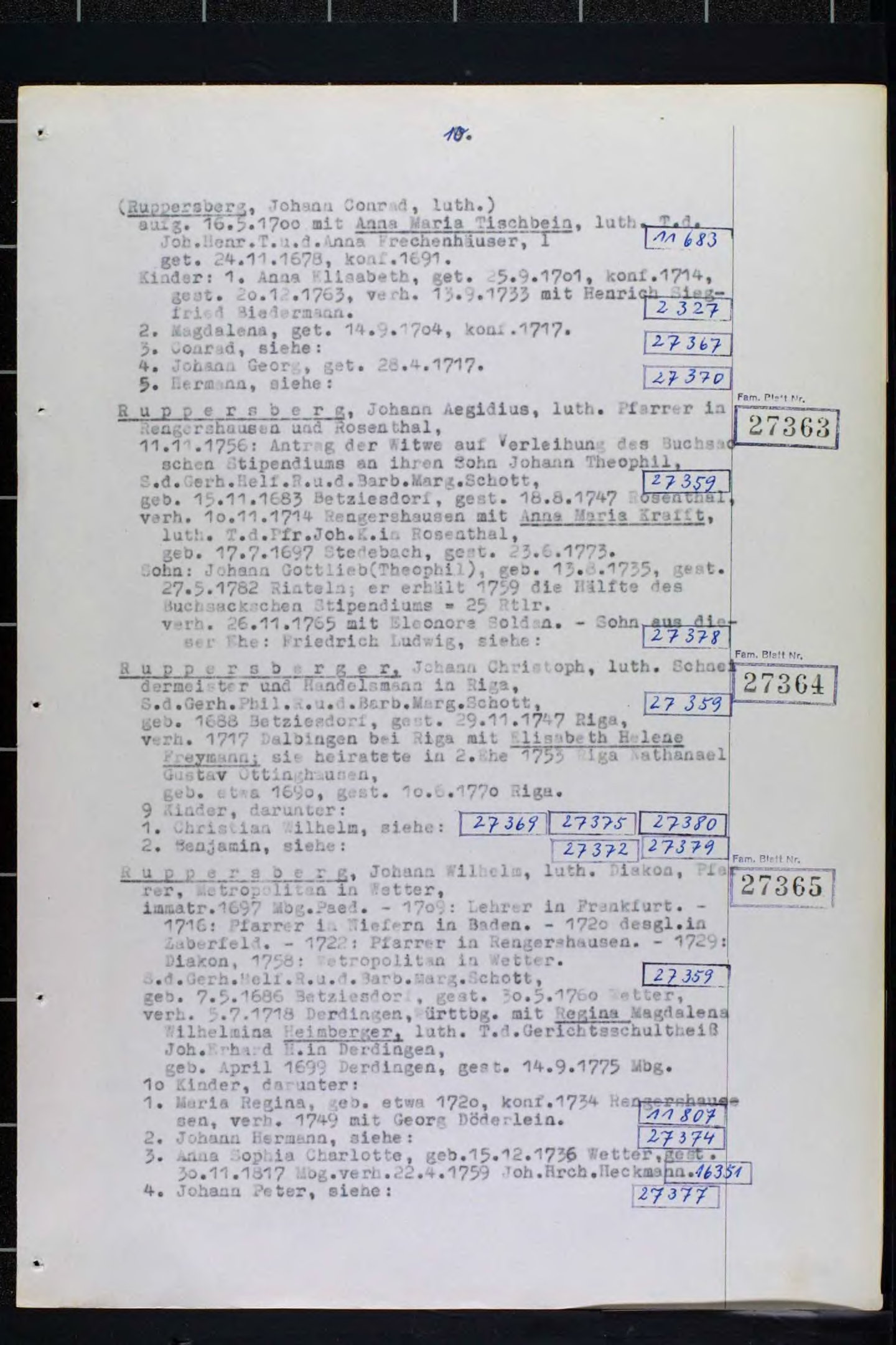 | Seit Fertigstellung des Marburger Sippenbuches 1950-1966 sind zahlreiche Ergänzungen und auch notwendige Korrekturen bekannt geworden. Zur aktuellen Seite existiert noch keine Ergänzunges- und Korrekturseite. Wenn Sie selbst Ergänzungen vornehmen möchten, wenden Sie sich bitte an Benutzer:Ernestus. |