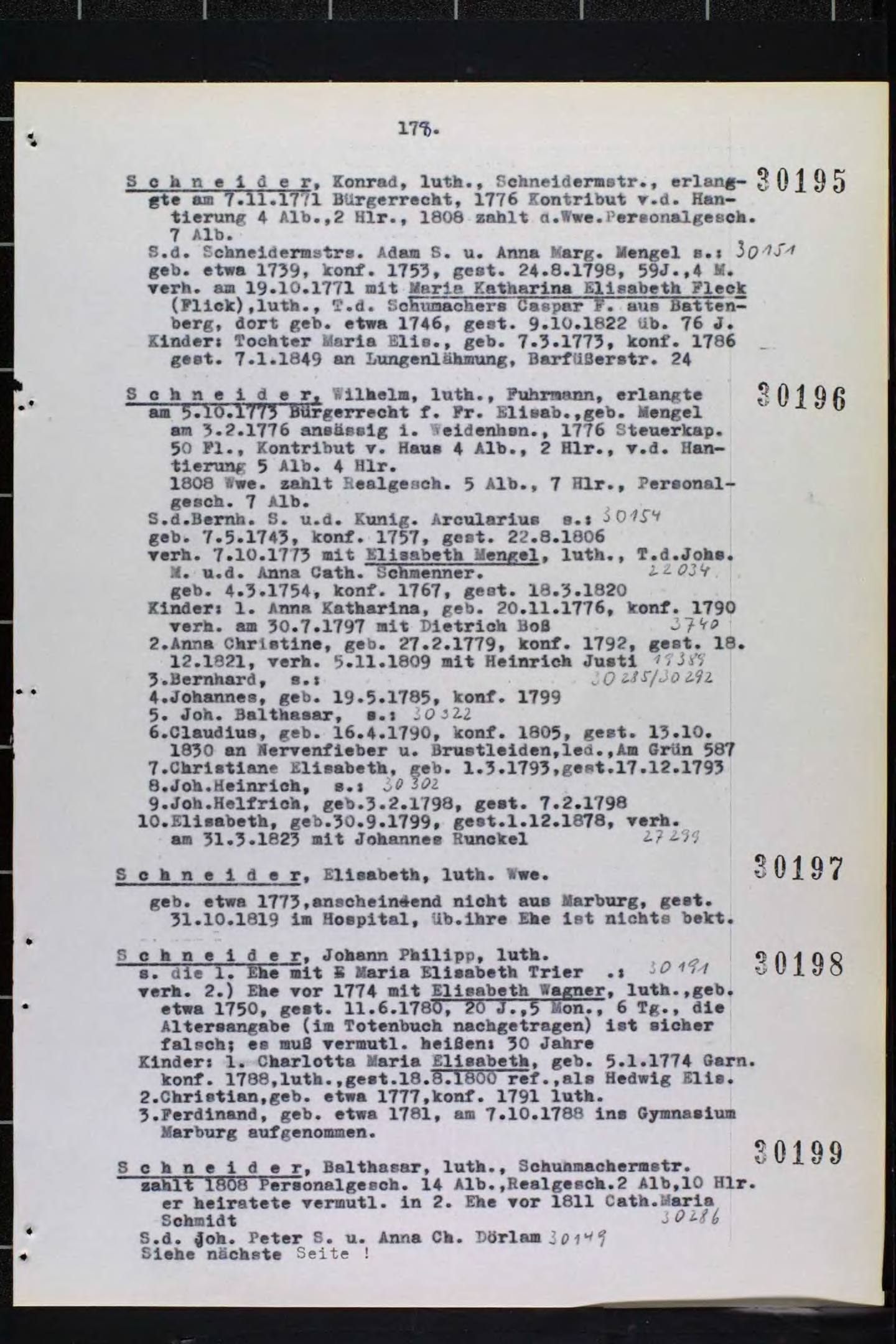| Seit Fertigstellung des Marburger Sippenbuches 1950-1966 sind zahlreiche Ergänzungen und auch notwendige Korrekturen bekannt geworden. Zur aktuellen Seite existiert noch keine Ergänzunges- und Korrekturseite. Wenn Sie selbst Ergänzungen vornehmen möchten, wenden Sie sich bitte an Benutzer:Ernestus. |