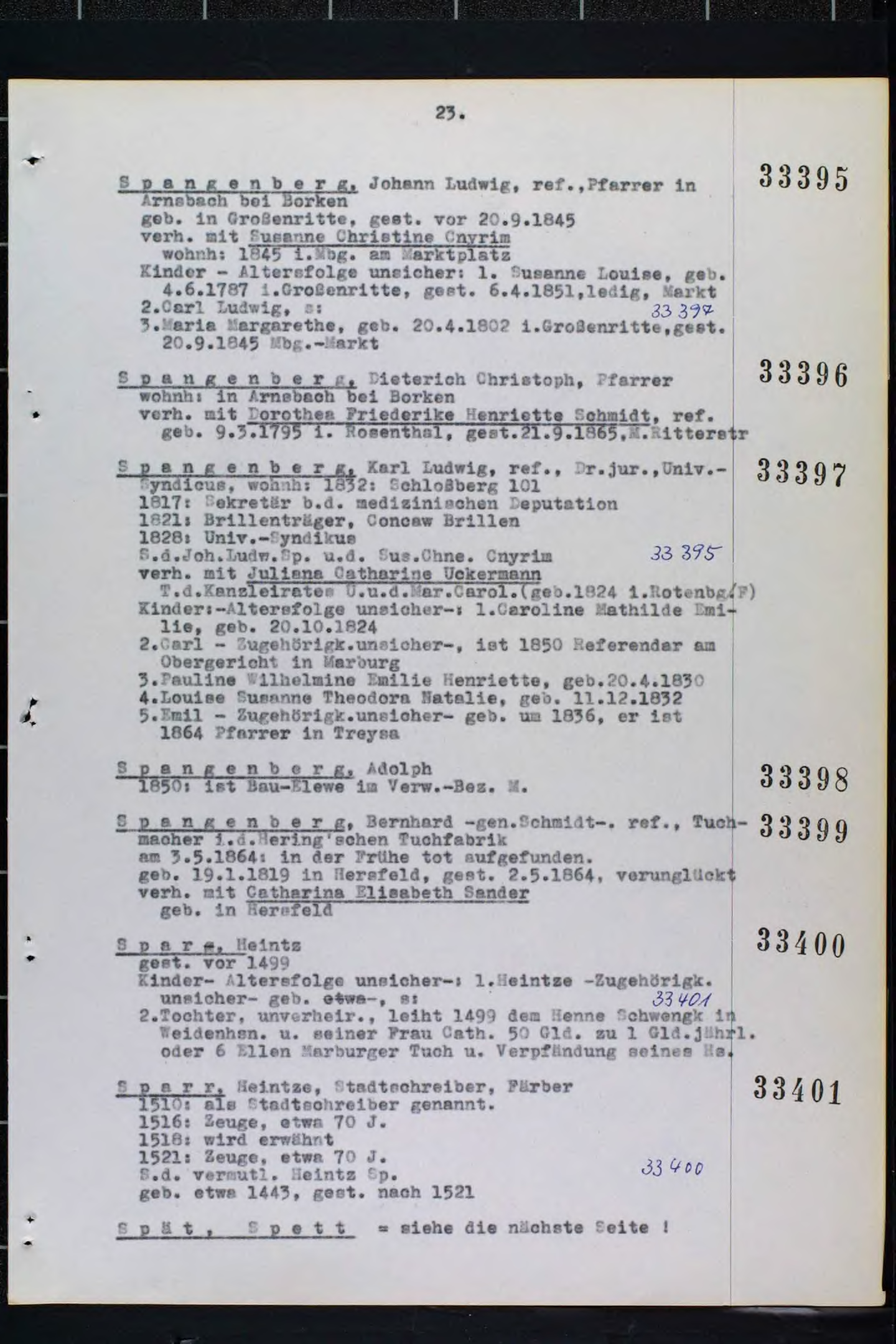 | Seit Fertigstellung des Marburger Sippenbuches 1950-1966 sind zahlreiche Ergänzungen und auch notwendige Korrekturen bekannt geworden. Zur aktuellen Seite existiert noch keine Ergänzunges- und Korrekturseite. Wenn Sie selbst Ergänzungen vornehmen möchten, wenden Sie sich bitte an Benutzer:Ernestus. |