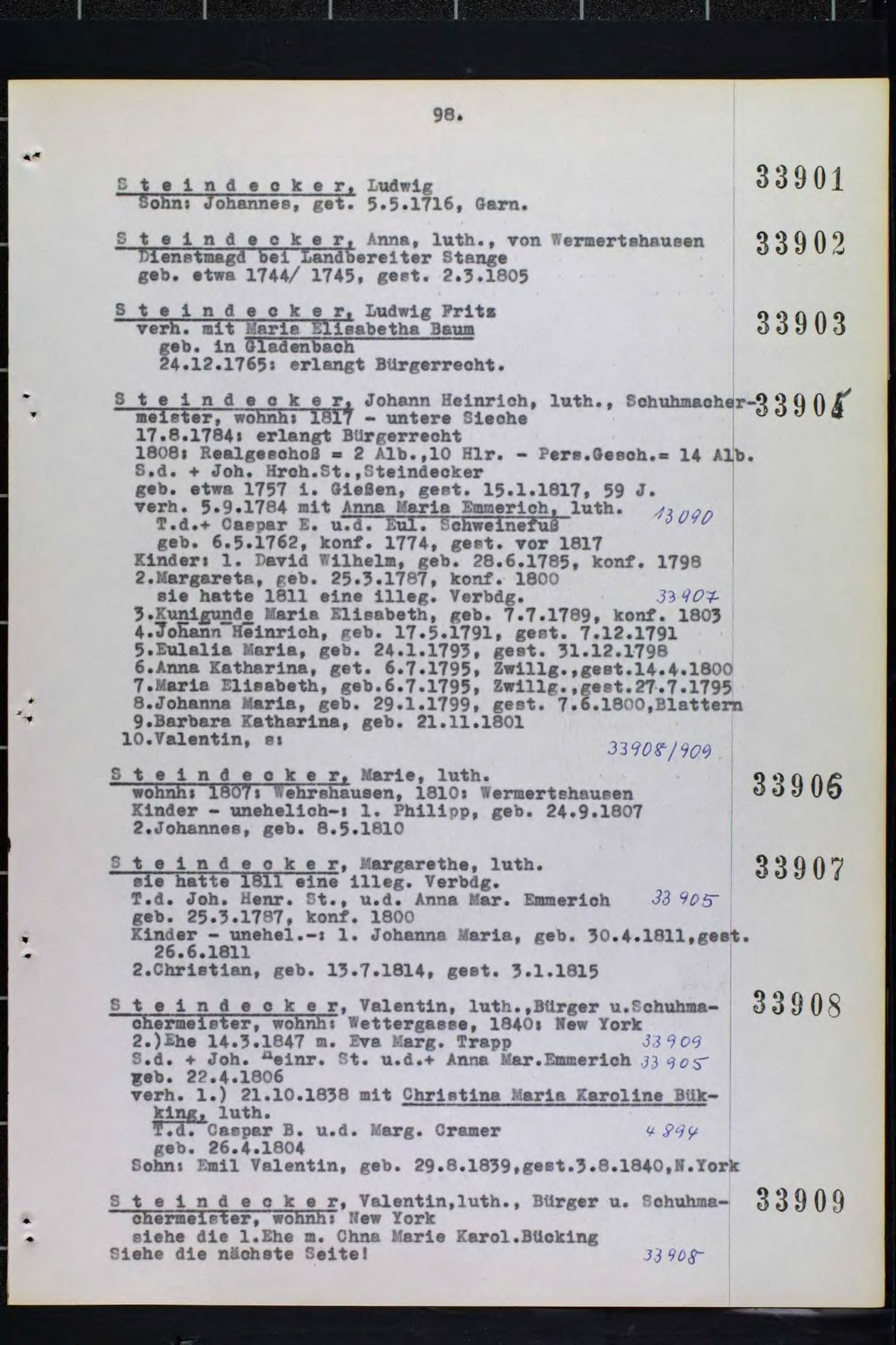 | Seit Fertigstellung des Marburger Sippenbuches 1950-1966 sind zahlreiche Ergänzungen und auch notwendige Korrekturen bekannt geworden. Zur aktuellen Seite existiert noch keine Ergänzunges- und Korrekturseite. Wenn Sie selbst Ergänzungen vornehmen möchten, wenden Sie sich bitte an Benutzer:Ernestus. |