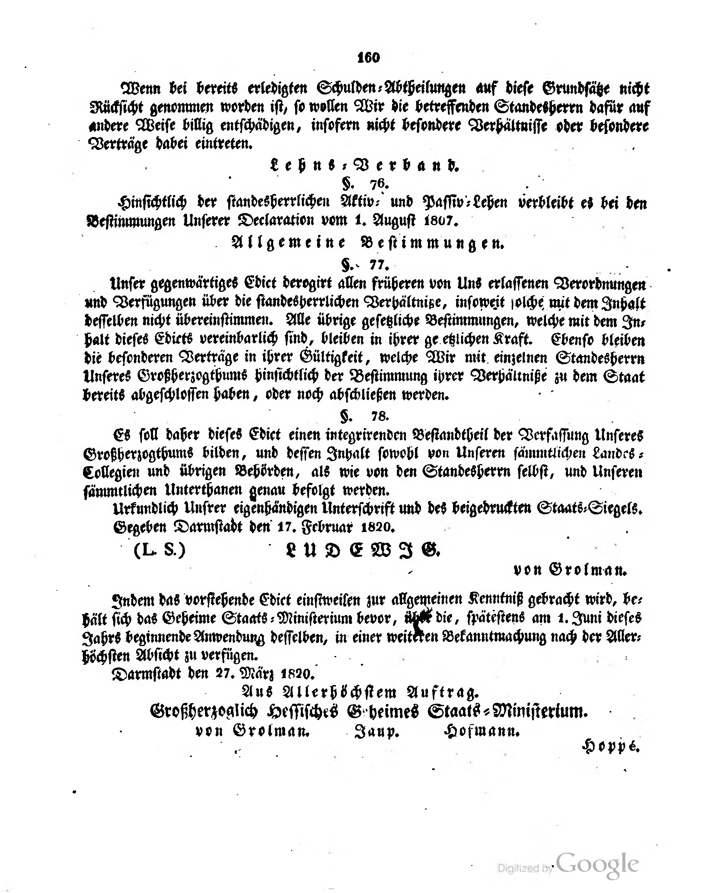 Großherzogtum Hessen/Regierungsblatt 1820/160