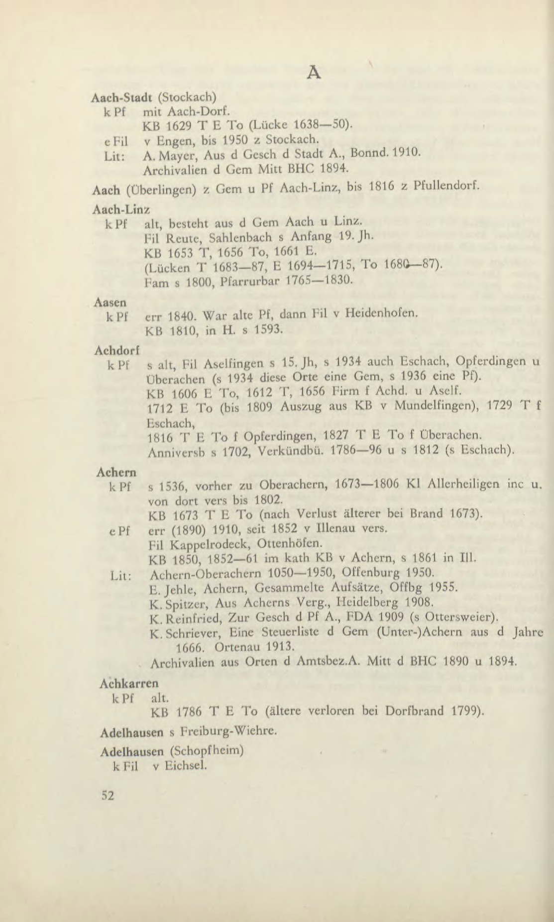 KB 1629 T E To (Lücke 163850). ef-il v Engen, bis 1950 z Stockach. Lit: A. Mayer, Aus d Goch d Stadt A., Bonnd. 1910. Archivalien d Gern Mitt BHC 1894. Aach (Überlingen) z. Gern u Pf Aaeh-I.inz, bis 1816 z Pfullendorf. Aach-Linz
