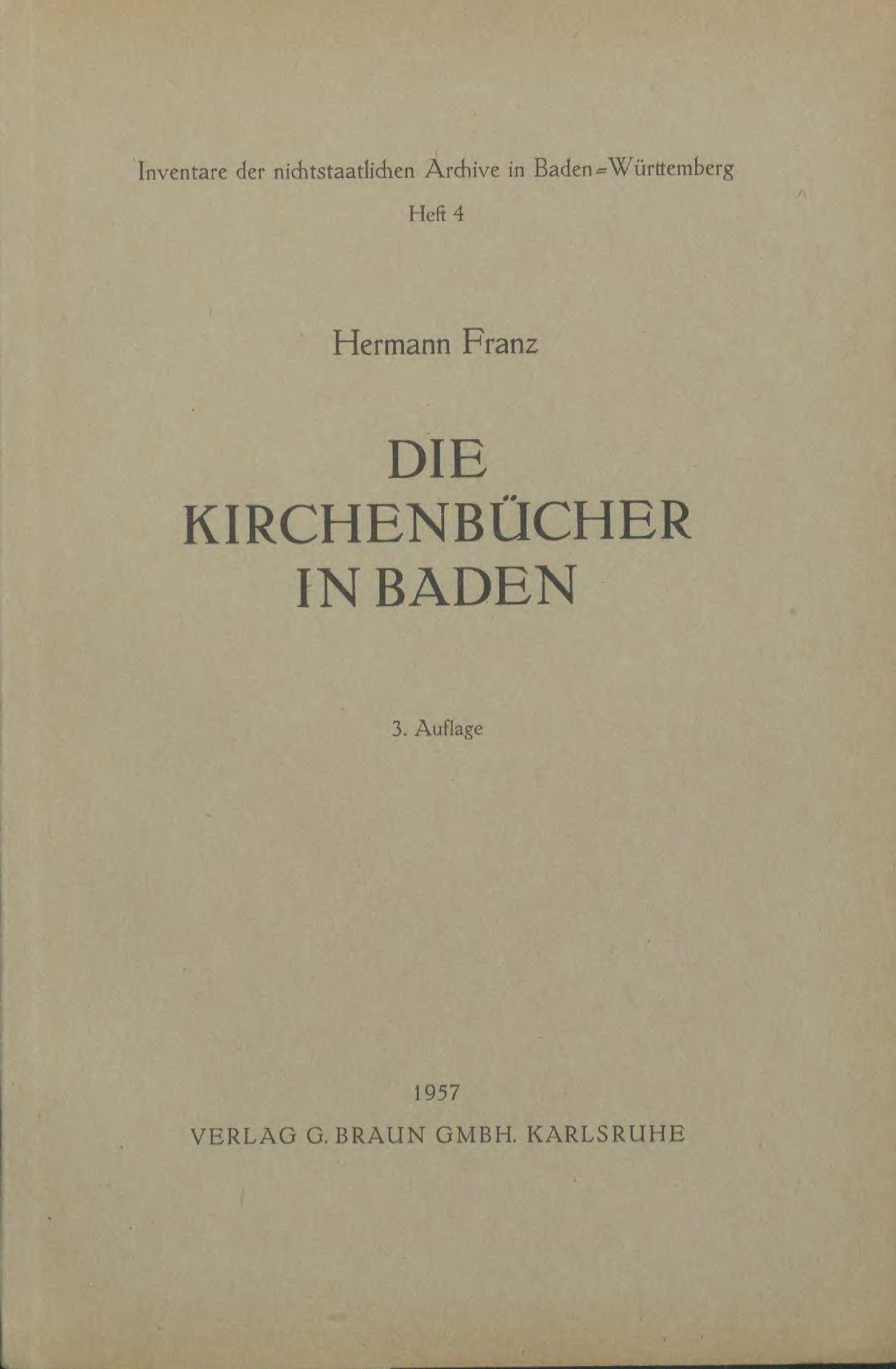 Die Kirchenbücher in Baden (1957)/Vorderdeckel