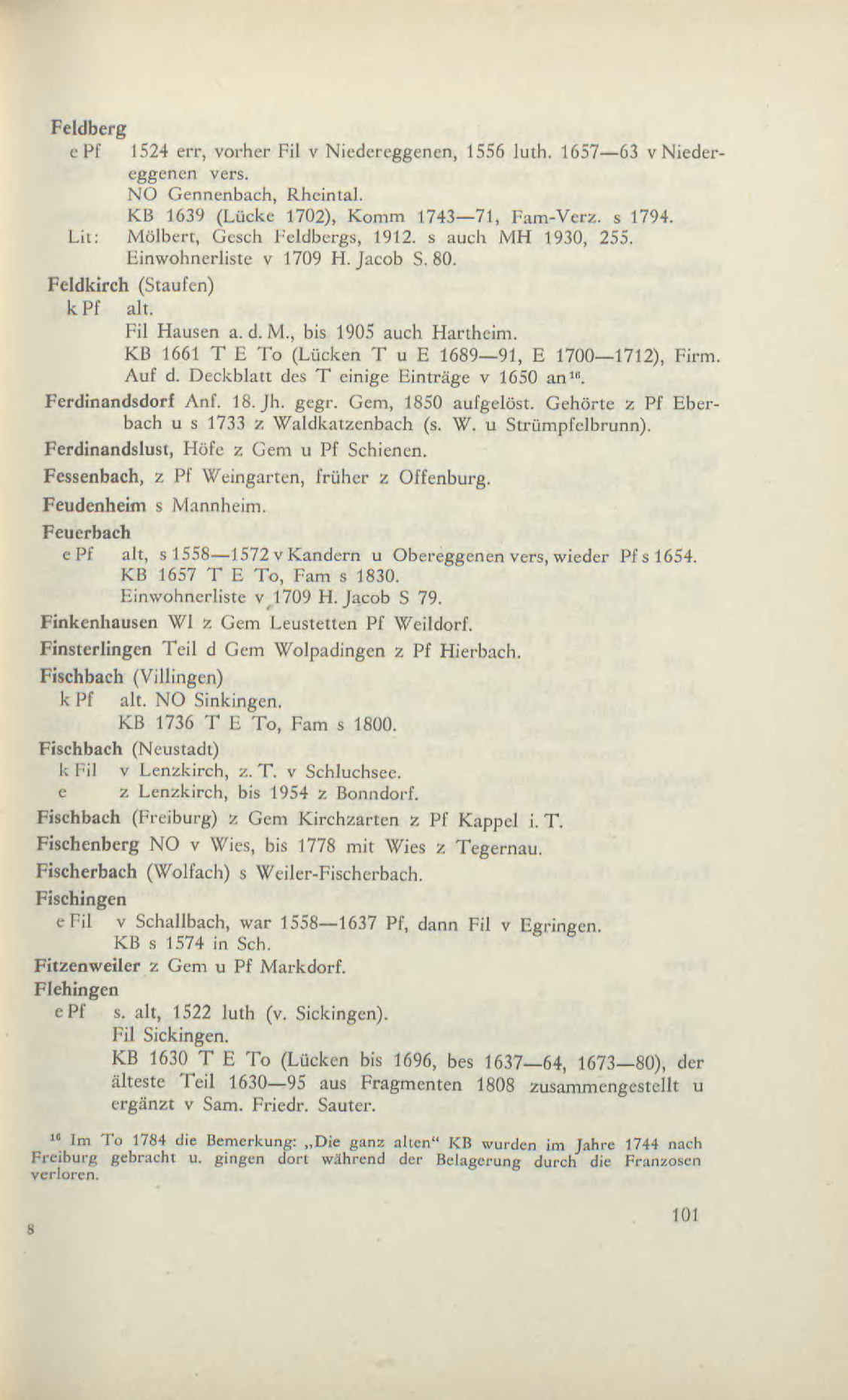 - ↑ Im To 1784 die Bemerkung „Die ganz alten“ KB wurden im Jahre 1744 nach Freiburg gebracht u. gingen dort während der Belagerung durch die Franzosen verloren.