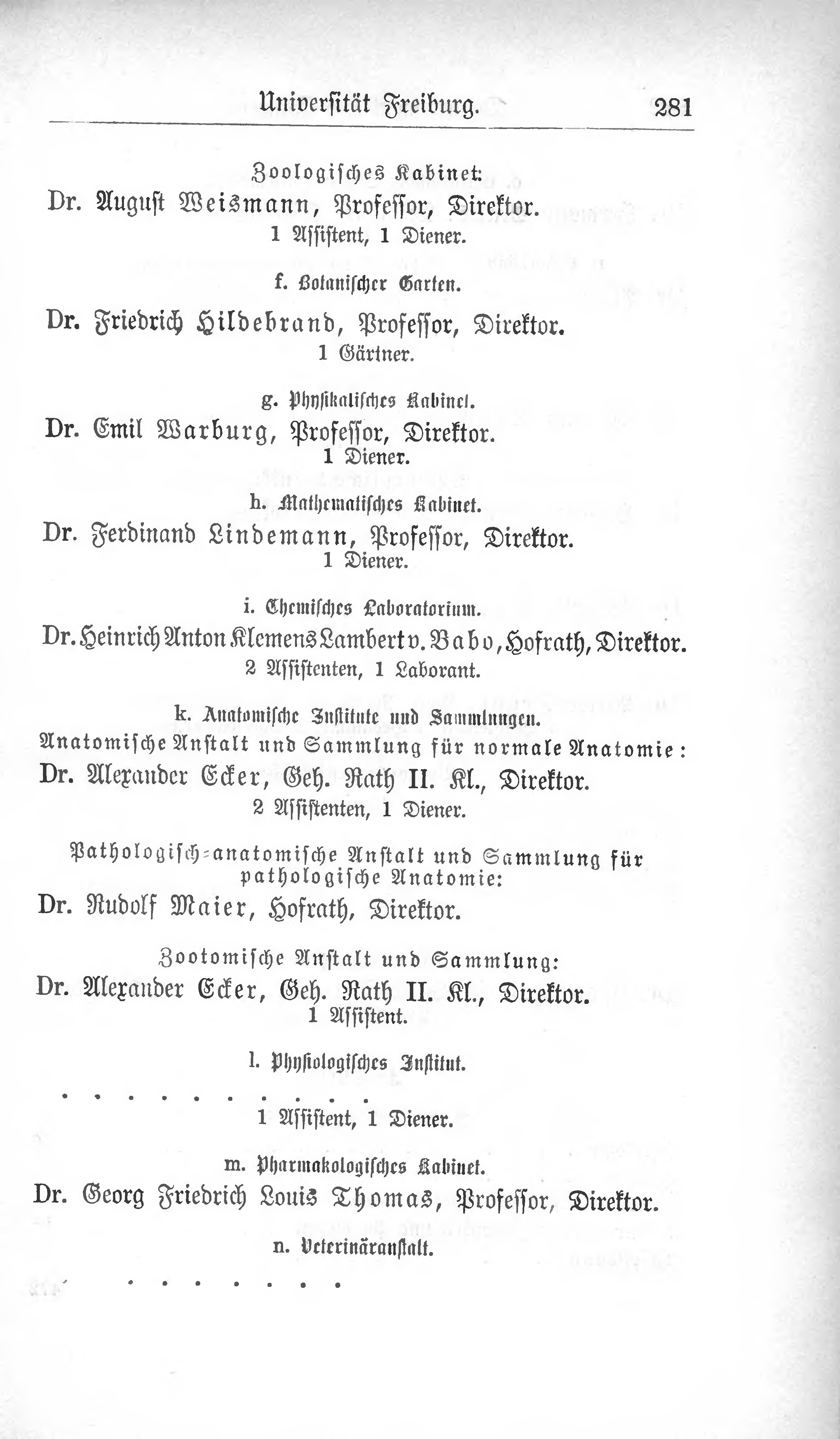 Dr. August Weismann, Professor, Direktor.