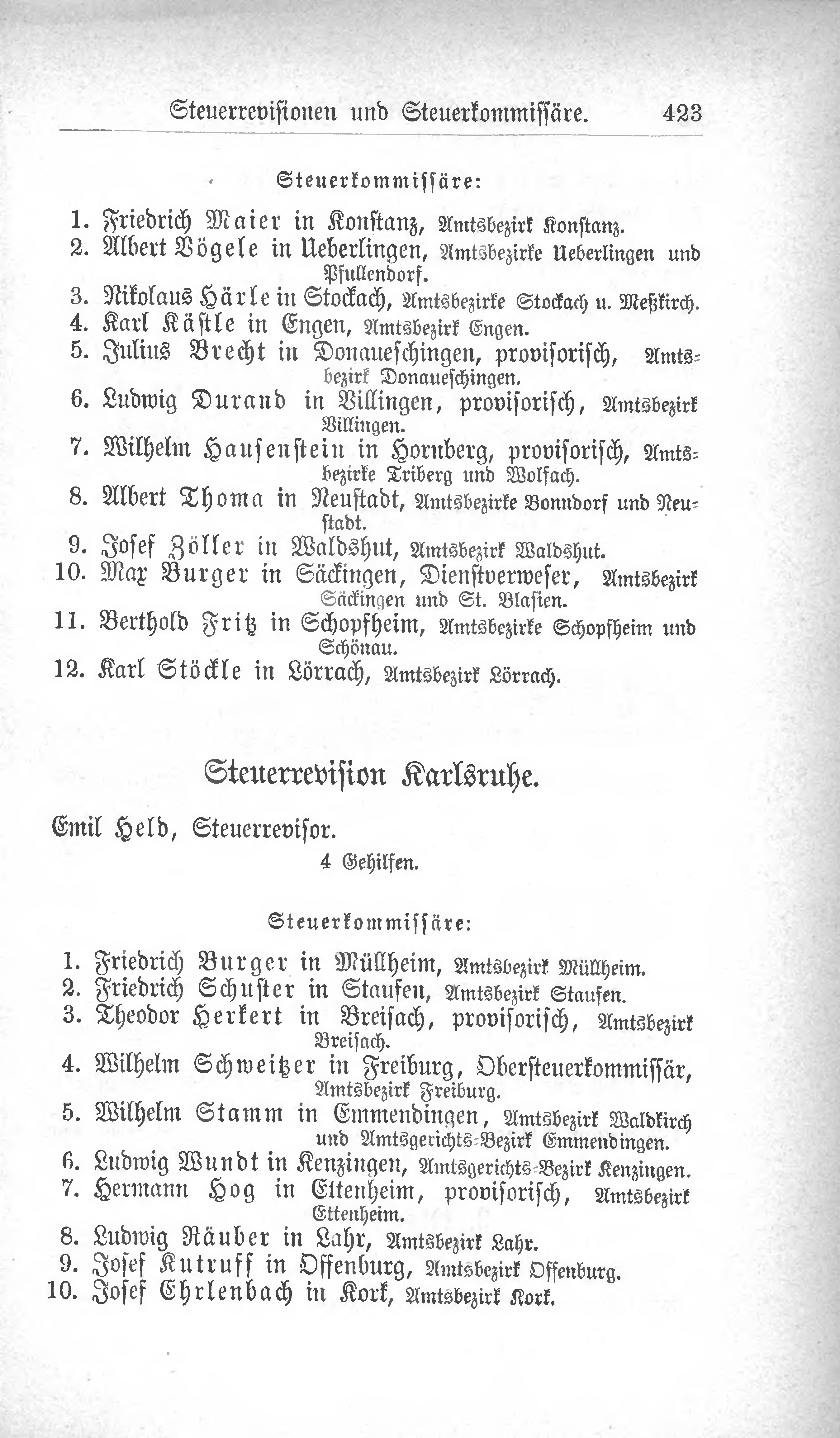 4. Wilhelm Schweizer in Freiburg, Obersteuerkommissär, Amtsbezirk Freiburg.