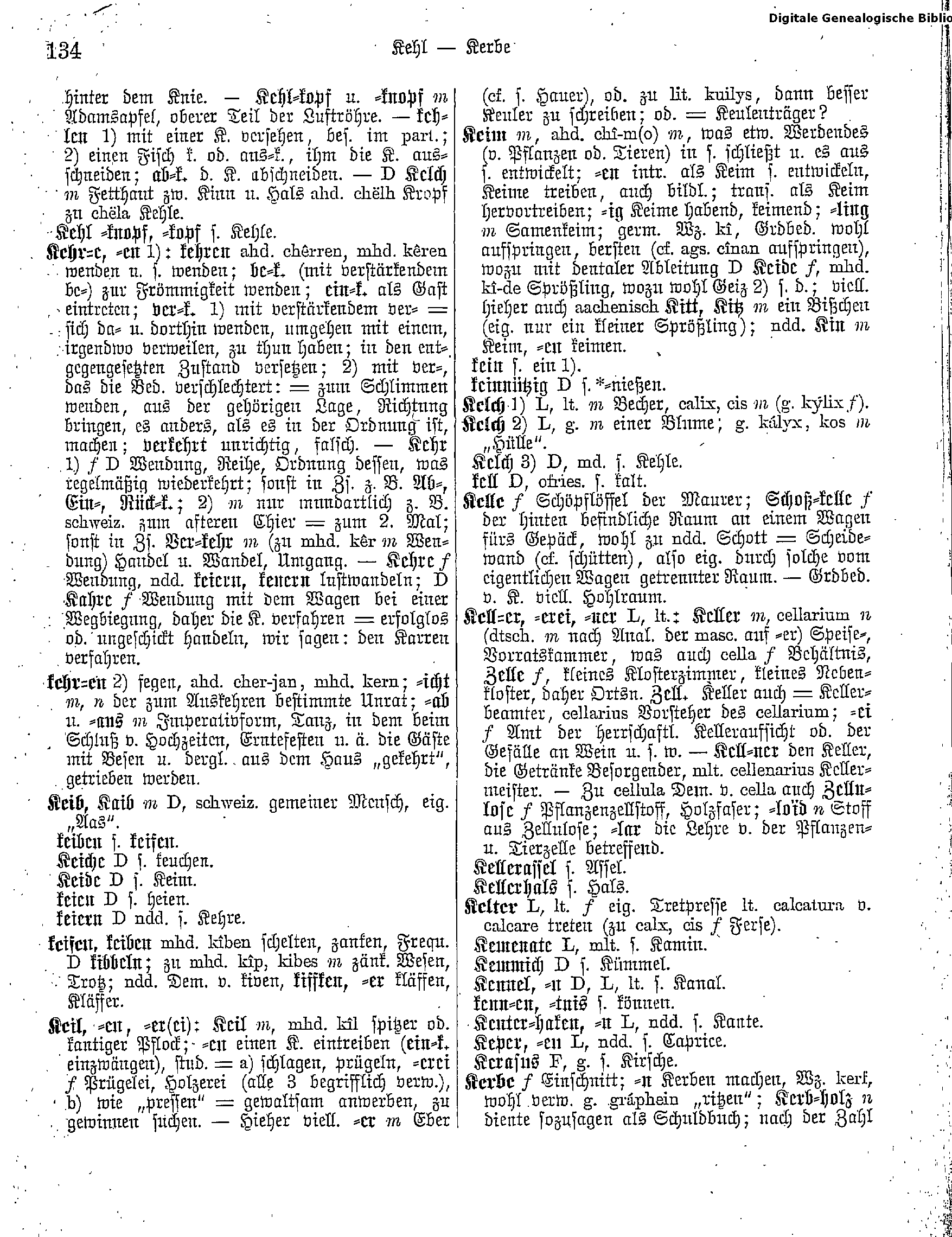 Keller, Kellerei, Kellner L, lt.: Keller m