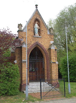 Die Kapelle aus gelbem Klinkerwerk liegt in der Nähe des Friedhofes an der Martinusstraße.