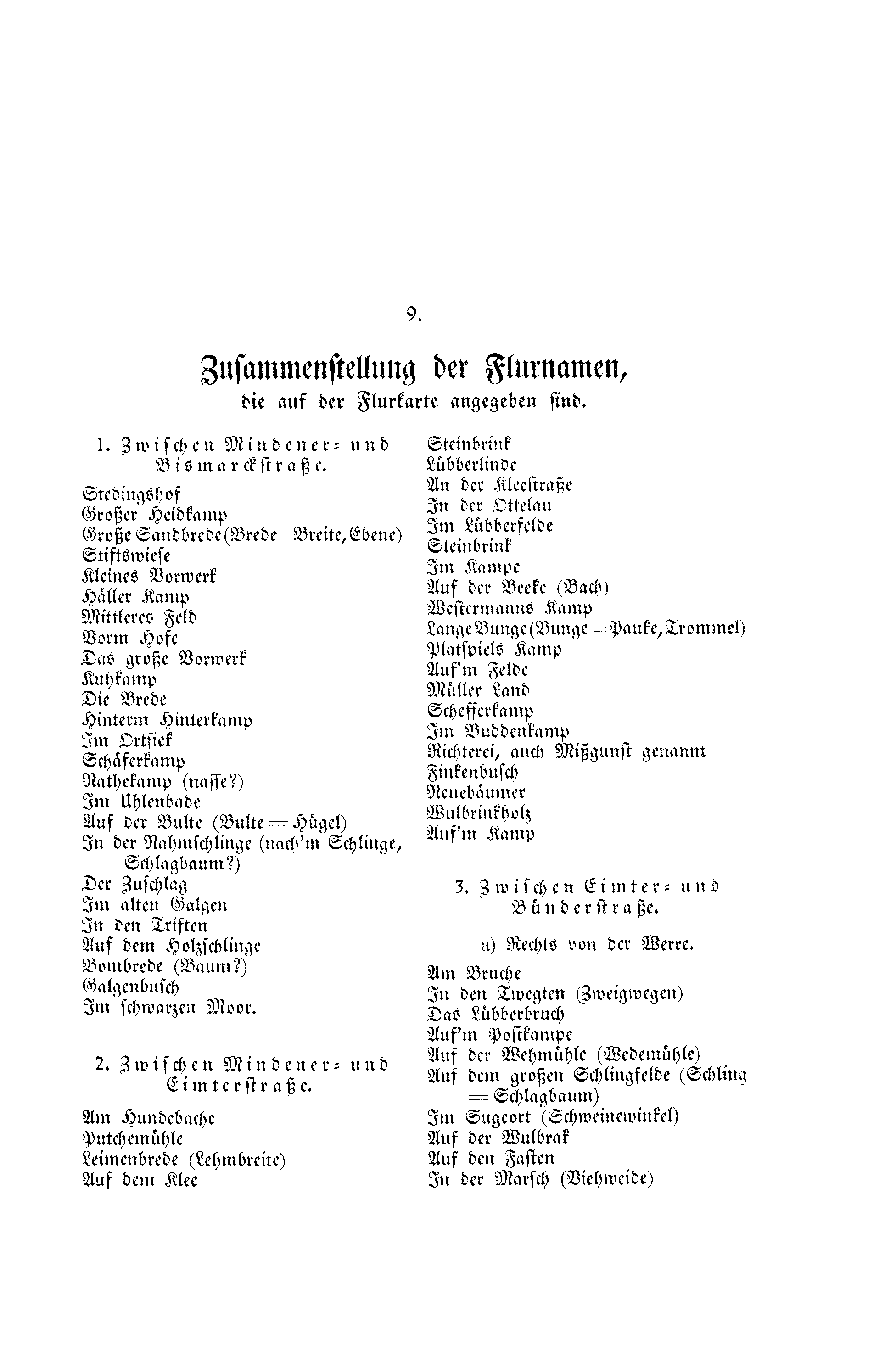 Zusammenstellung der Flurnamen,