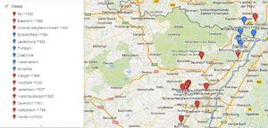 Geogen ist ein Onlinedienst für "geographische Genealogie", was so viel bedeutet wie ortsbezogene Ahnenforschung. Dieser Onlinedienst erstellt Landkarten über die Verbreitung von Familiennamen in Deutschland. Besonders auffällige Konzentrationen können auf den Ursprungsort des Namens oder der Familie hindeuten. Hier großer Dank an Georg Stöpel, Programmierer von Geogen.