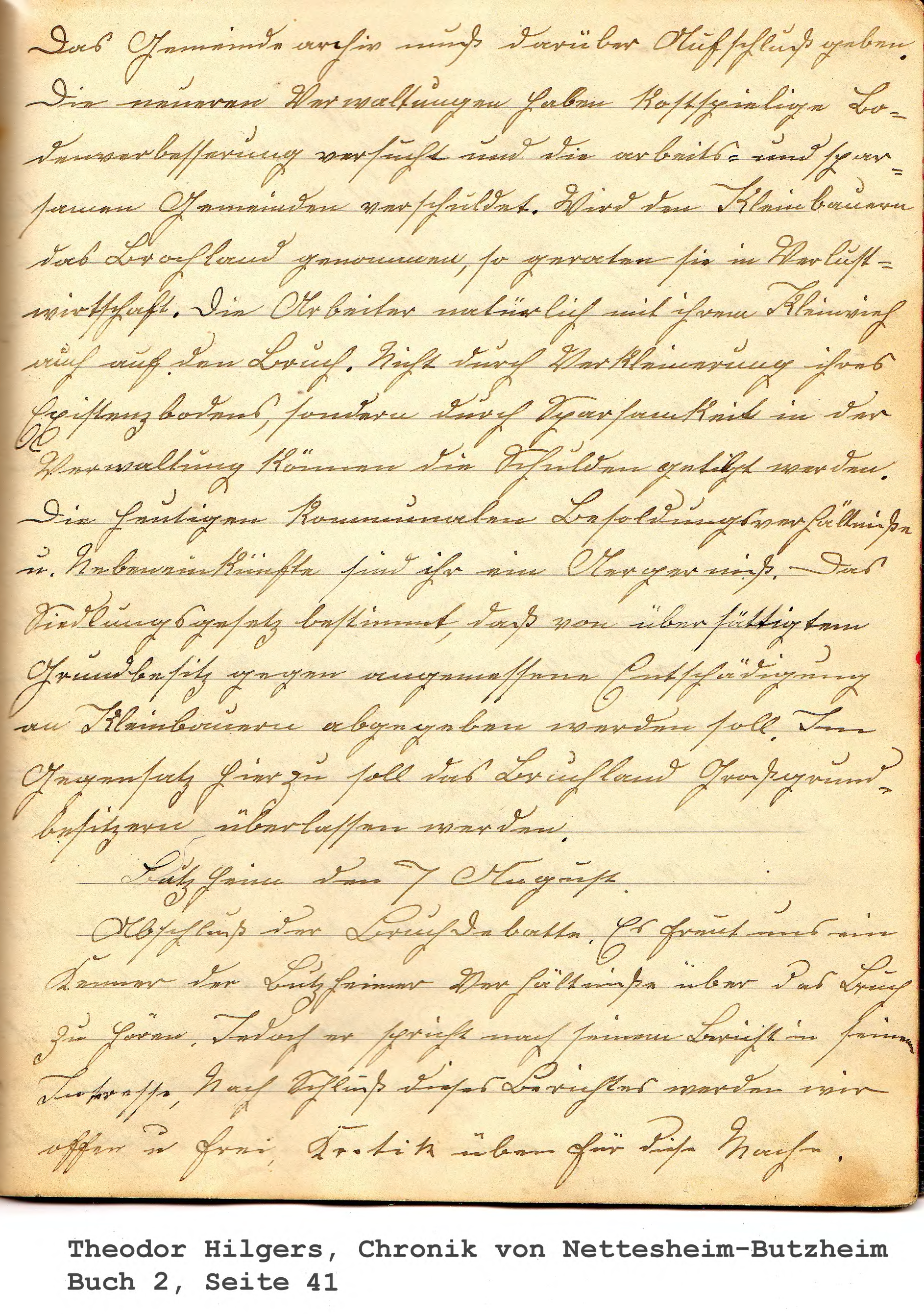 Abschluß der Bruchdebatte. Es freut uns ein Kenner der Butzheimer Verhältniße über das Bruch zu hören. Jedoch er spricht nach seinem Bericht in seinem Interesse, Nach Schluß dieses Berichtes werden wir offen u frei, Kritik üben für diese Mache.