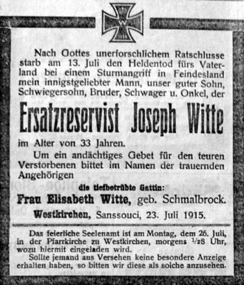 Gefallene aus Westkirchen im 1. Weltkrieg/Josef Witte