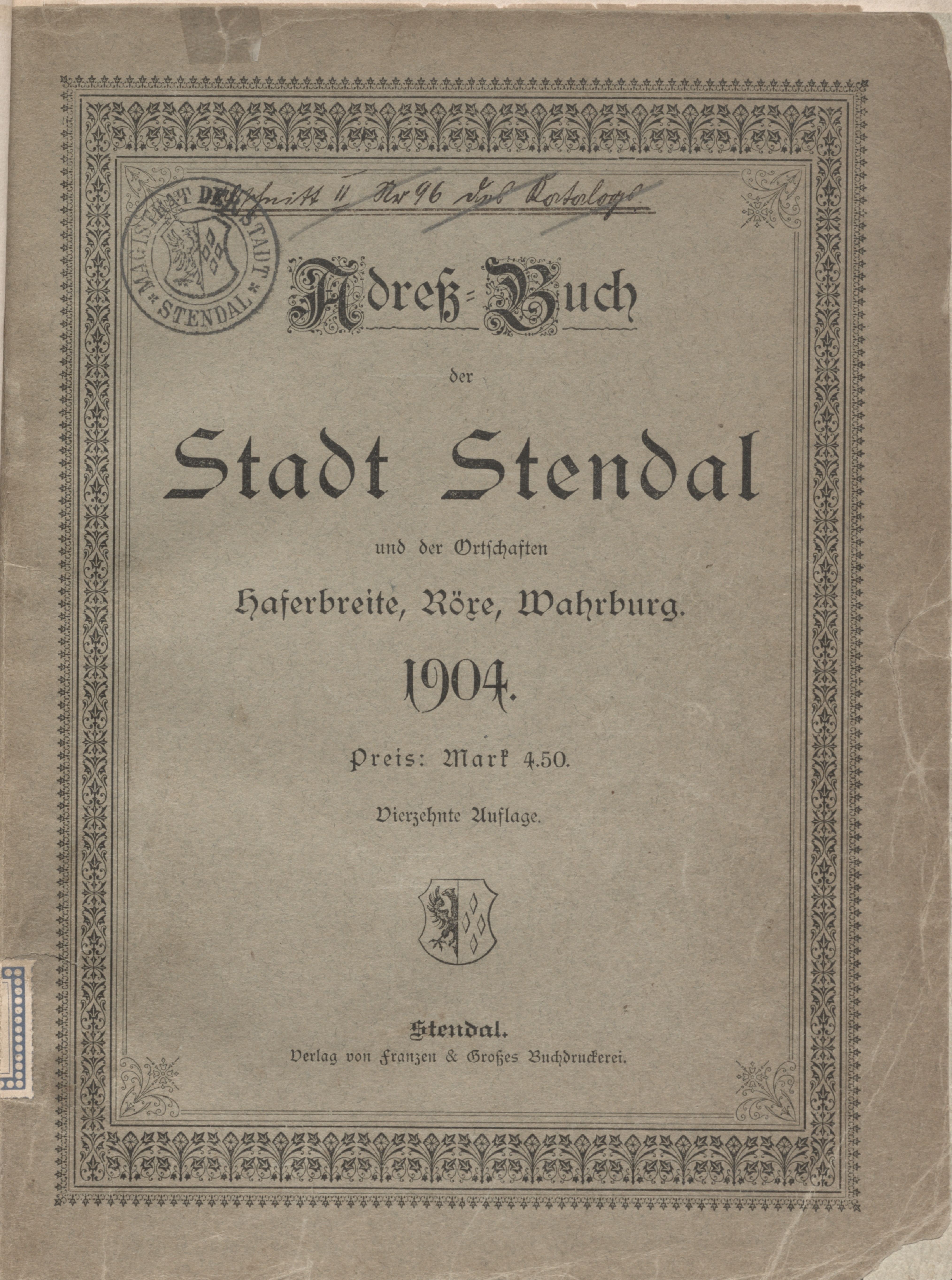 | aktuell | 15:00, 6. Mär. 2022 | 4.055 × 5.451 (2,4 MB) | PLingnau (Diskussion • Beiträge) | == Beschreibung == {{Information |Beschreibung = Adressbuch der Stadt Stendal 1904 |Quelle = Scan aus dem Stadtarchiv Stendal |Urheber = PLingnau |Datum = 2021-08-23 |Genehmigung = {{self|Cc-by-nc-sa-3.0-de}} |Andere Versionen = |Anmerk |