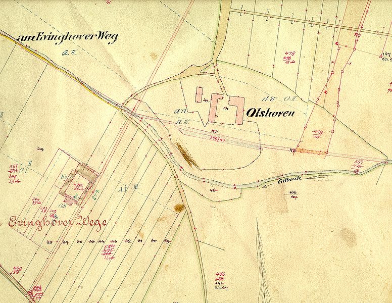 Der Situationsplan des Alshofes vor und nach dem Umzug Auszug aus der Katasterkarte von Evinghoven