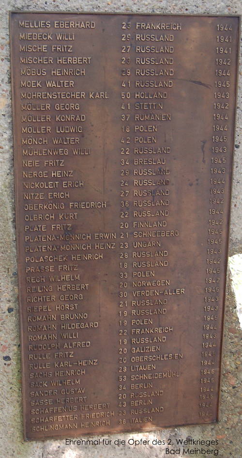 - Beschreibung: Namentafel am Ehrenmal für die Opfer des 2. Weltkrieges in Bad Meinberg.
