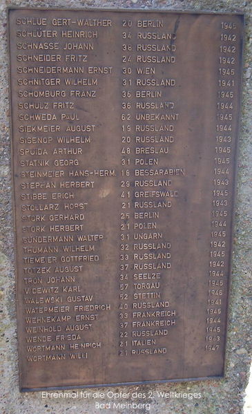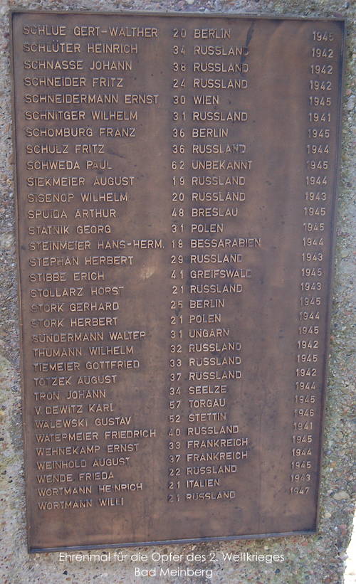 - Beschreibung: Namentafel am Ehrenmal für die Opfer des 2. Weltkrieges in Bad Meinberg.