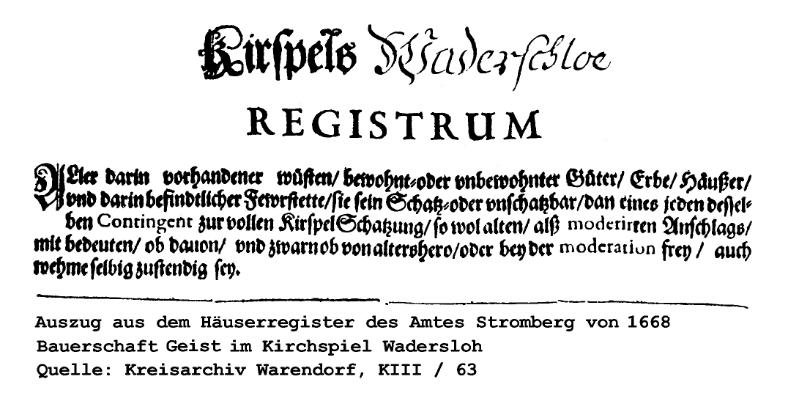 Auszug aus dem Häuserregister des Amtes Stromberg von 1668 | |