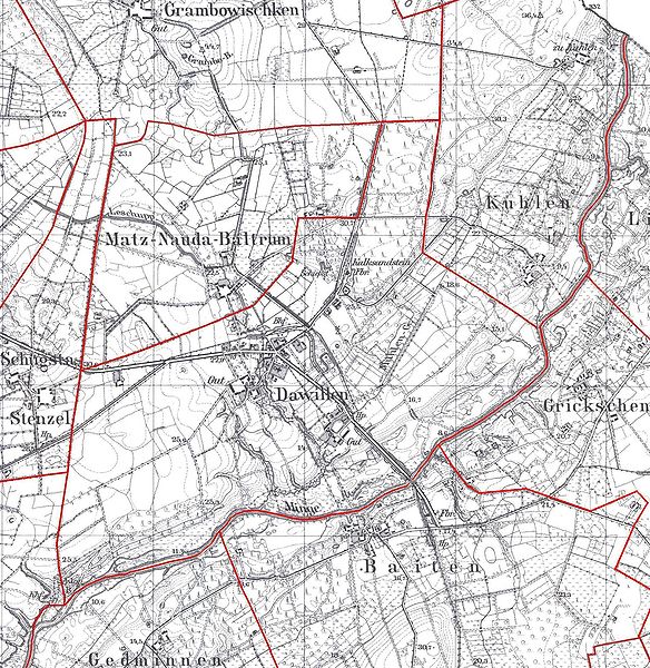 Ausschnitt aus dem Meßtischblatt 0394 Dawillen (1:25 000) | ||||