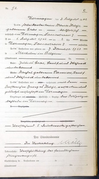 Standesamt Dormagen, Sterbeurkunde Nr.92/1942