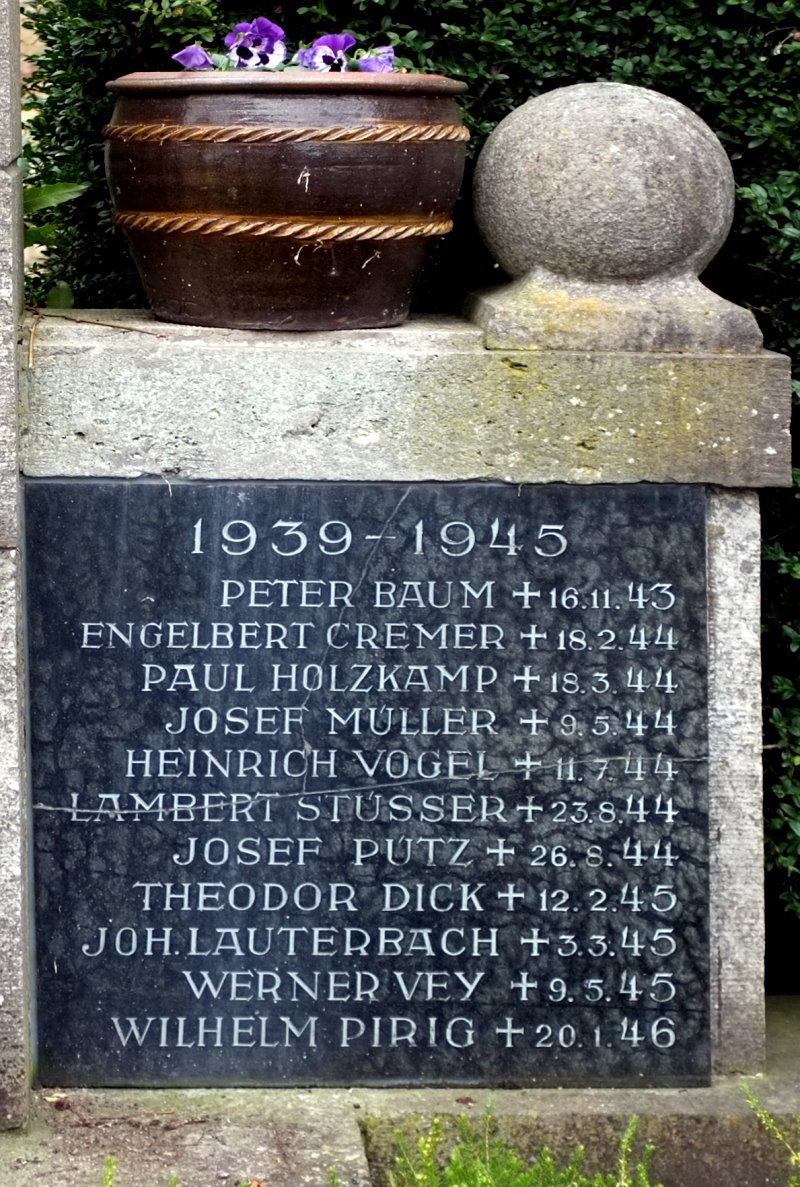 rechte Tafel mit den Namen von Kriegsopfern des II. Weltkrieges 1939-45