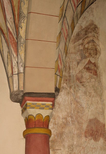 freigelegte Apostelfresken aus dem 13. Jahrhundert im Altarraum der kath. Pfarrkirche St. Ursula in Lipp