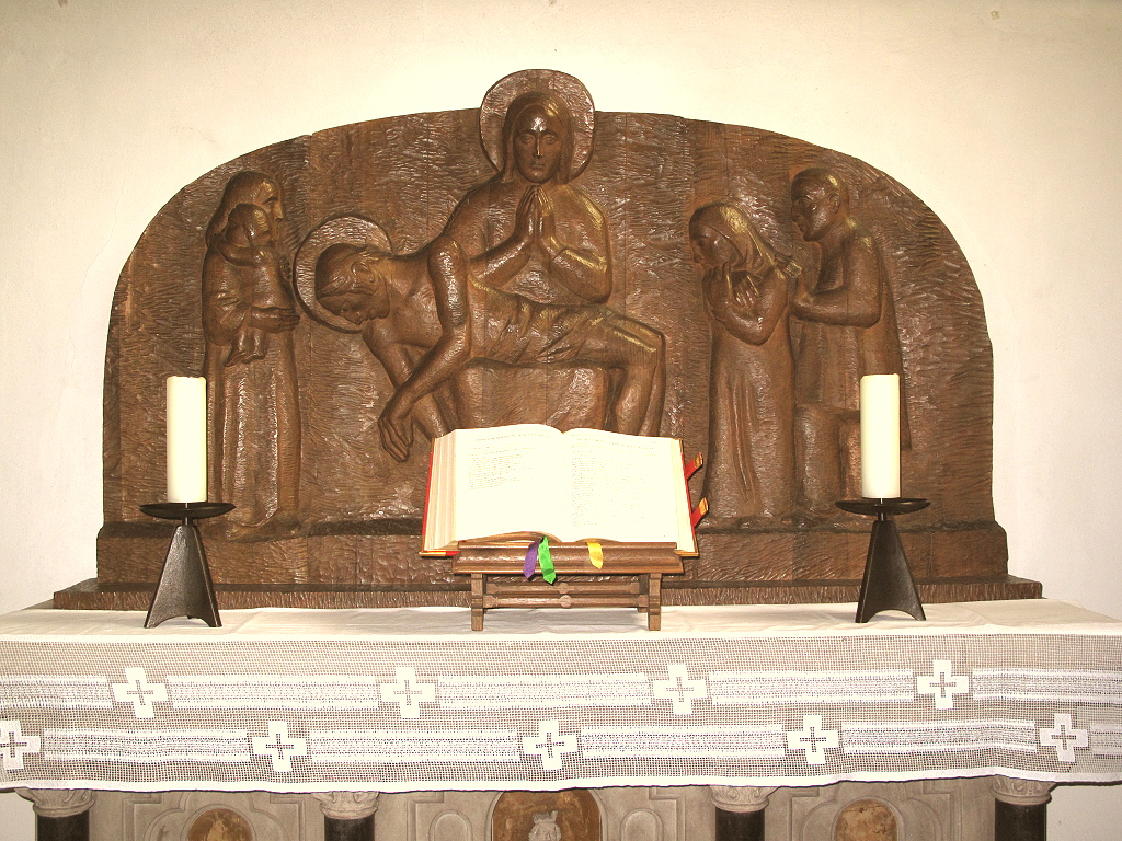 Der rechte Seitenaltar mit der Darstellung einer Pieta aus Lindenholz in der St. Ursulakirche in Lipp