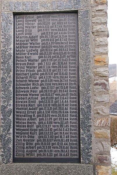 Gedenktafel für die Opfer des II.Weltkrieges 1939-1945 am Ehrenmal in Niederwörresbach