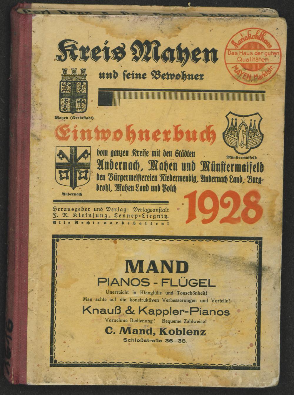 | aktuell | 07:54, 7. Feb. 2023 | 1.000 × 1.341 (209 KB) | Julche (Diskussion • Beiträge) | {{Information |Beschreibung = Adressbuch Mayen 1928 - Titelblatt |Quelle = https://www.dilibri.de/rlb/content/pageview/1167469 |Urheber = |Datum = |Scans = |Genehmigung = |Andere Versionen = |Anmerkungen = }} |