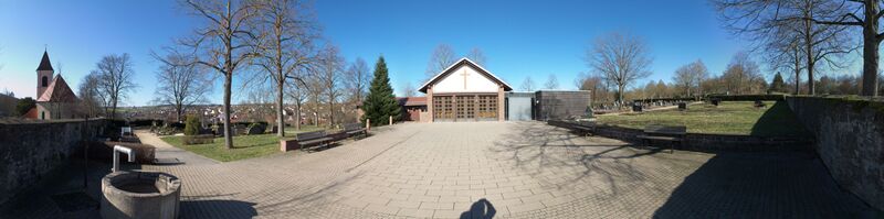 | aktuell | 22:07, 21. Feb. 2023 | 4.833 × 1.200 (920 KB) | Kla-ma-ba (Diskussion • Beiträge) | {{Information |Beschreibung = Friedhof Königsbach - Aussegnungshalle |Quelle = eigenes Foto |Urheber = Klaus Martin Bardey |Datum = 21.02.2023 |Scans = |Genehmigung = |Andere Versionen = |Anmerkungen = 234° Panoramafoto aus 15 Einzelbildern }} Category:Images Kla-ma-ba |