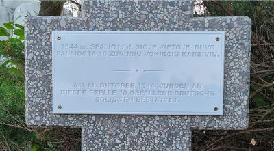 In der Nähe des Gutes Jonikaten wurden am 11. Oktober 1944 zehn gefallene deutsche Soldaten beerdigt. Kęstutis Zdanevičius, der es sich zur Aufgabe gemacht hat, die alten Gemeindefriedhöfe im Memelland zu fotografieren und zu dokumentieren, hat sich im Juni 2021 dieser verwahrlosten und fast zugewachsenen Grabstätte angenommen. In bemerkenswerter Eigeninitiative fertigte er ein Betonkreuz mit Inschrift an und zusammen mit fleißigen Helfern wurden Büsche gerodet und das neue Kreuz errichtet.