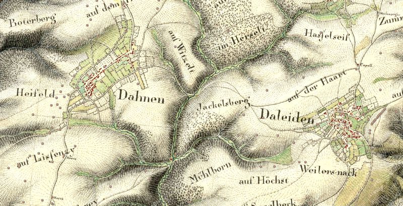 Karte um 1810 von Dahnen Ausschnitt von Dahnen und Umgebung