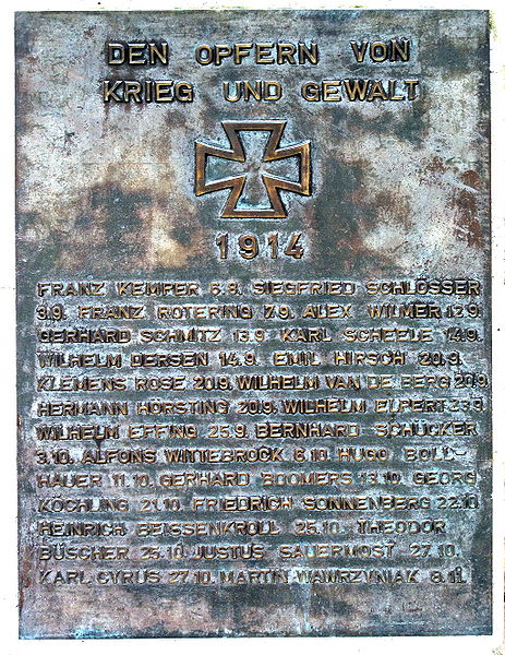| aktuell | 14:35, 28. Mär. 2011 | 1.024 × 1.326 (622 KB) | KlausErdmann (Diskussion • Beiträge) | {{Information |Beschreibung = ;Ehrenmal für die Opfer des I. Weltkrieges in Ahaus: Gedenktafel |Quelle = selbst fotografiert |Urheber = Klaus Erdmann |Datum = 25.03.2011 |Genehmigung = {{self|Cc-by-nc-sa-3.0-de}} |An |