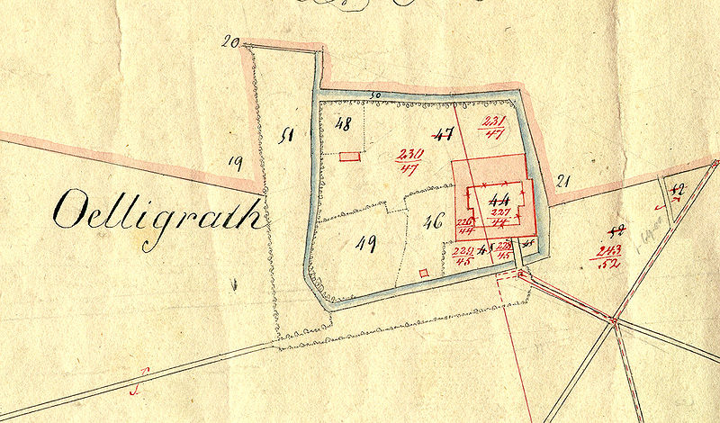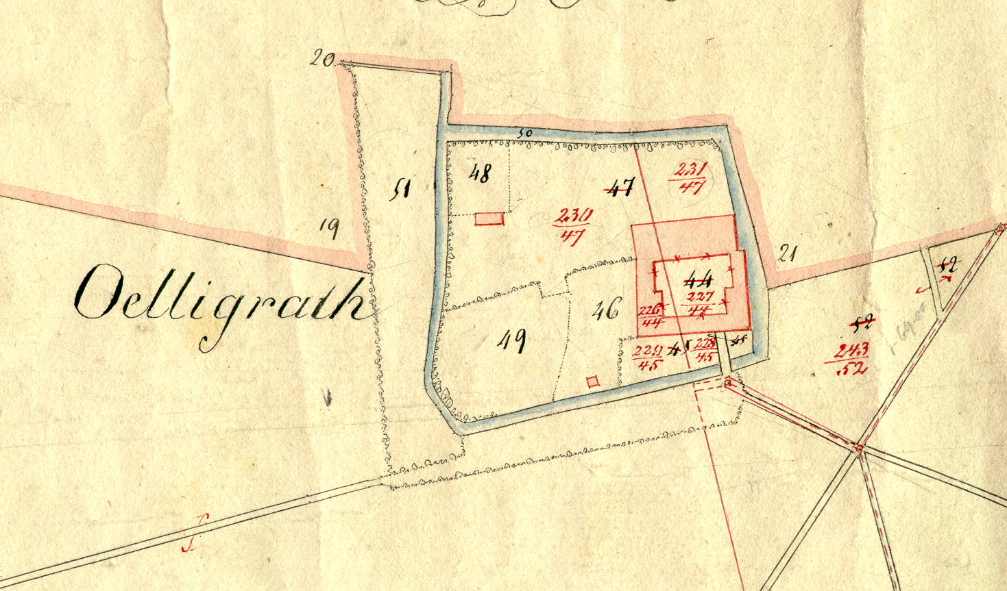 Kartenausschnitt des (aufgegebenen) Ölligrather Hofes von 1810 Signatur: HN1