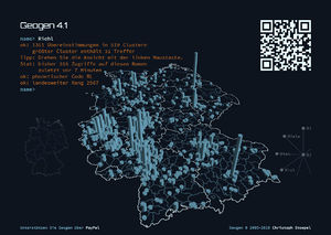 Geogen ist ein Onlinedienst für "geographische Genealogie", was so viel bedeutet wie ortsbezogene Ahnenforschung. Dieser Onlinedienst erstellt Landkarten über die Verbreitung von Familiennamen in Deutschland. Besonders auffällige Konzentrationen können auf den Ursprungsort des Namens oder der Familie hindeuten. Hier großer Dank an Georg Stöpel, Programmierer von Geogen.
