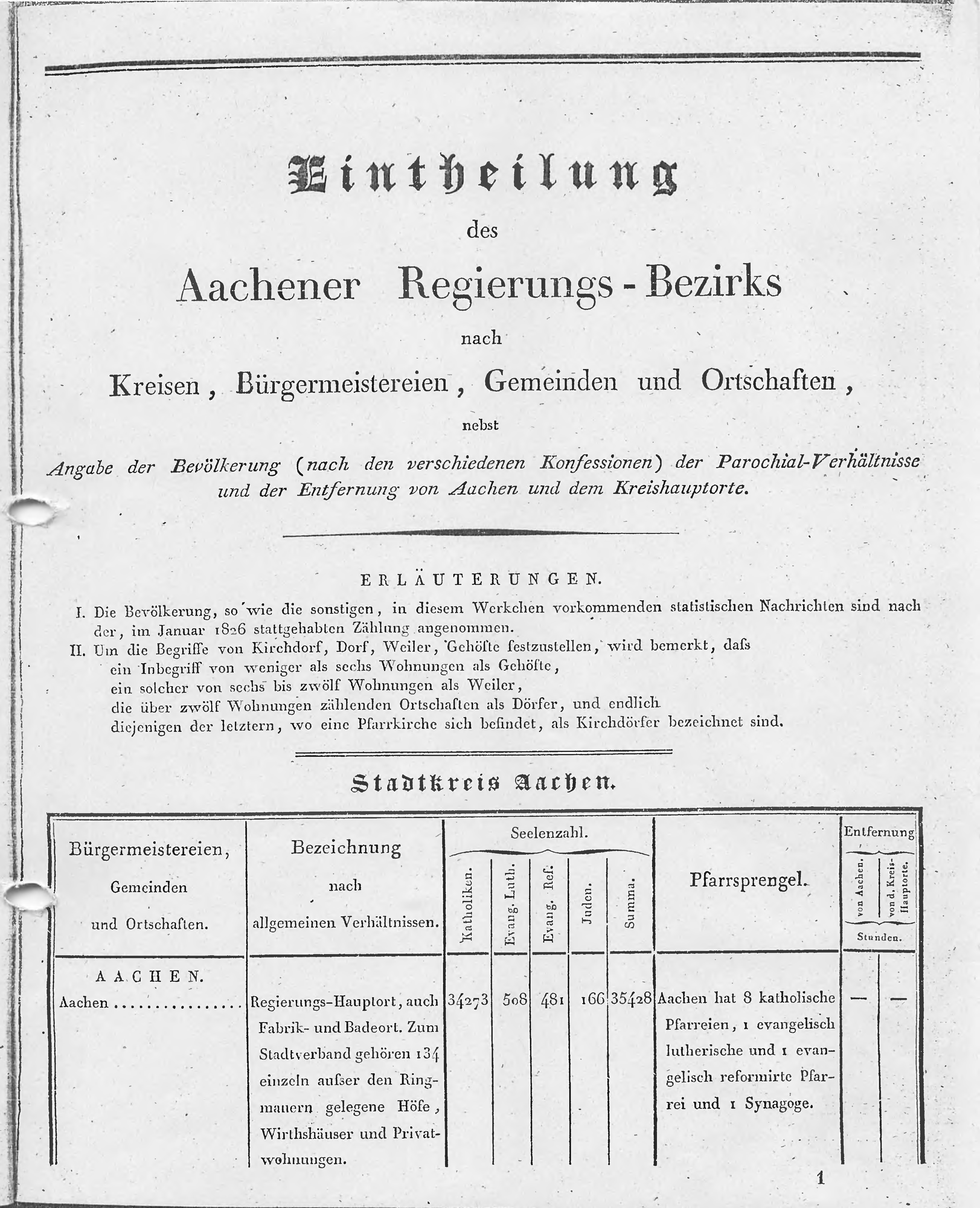 | Regierungsbezirk Aachen/Statistik 1827 | |